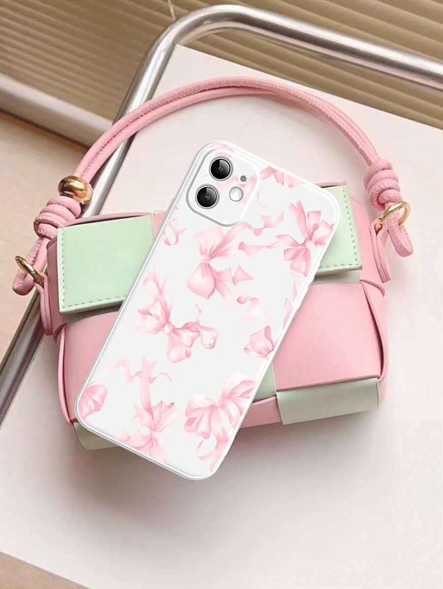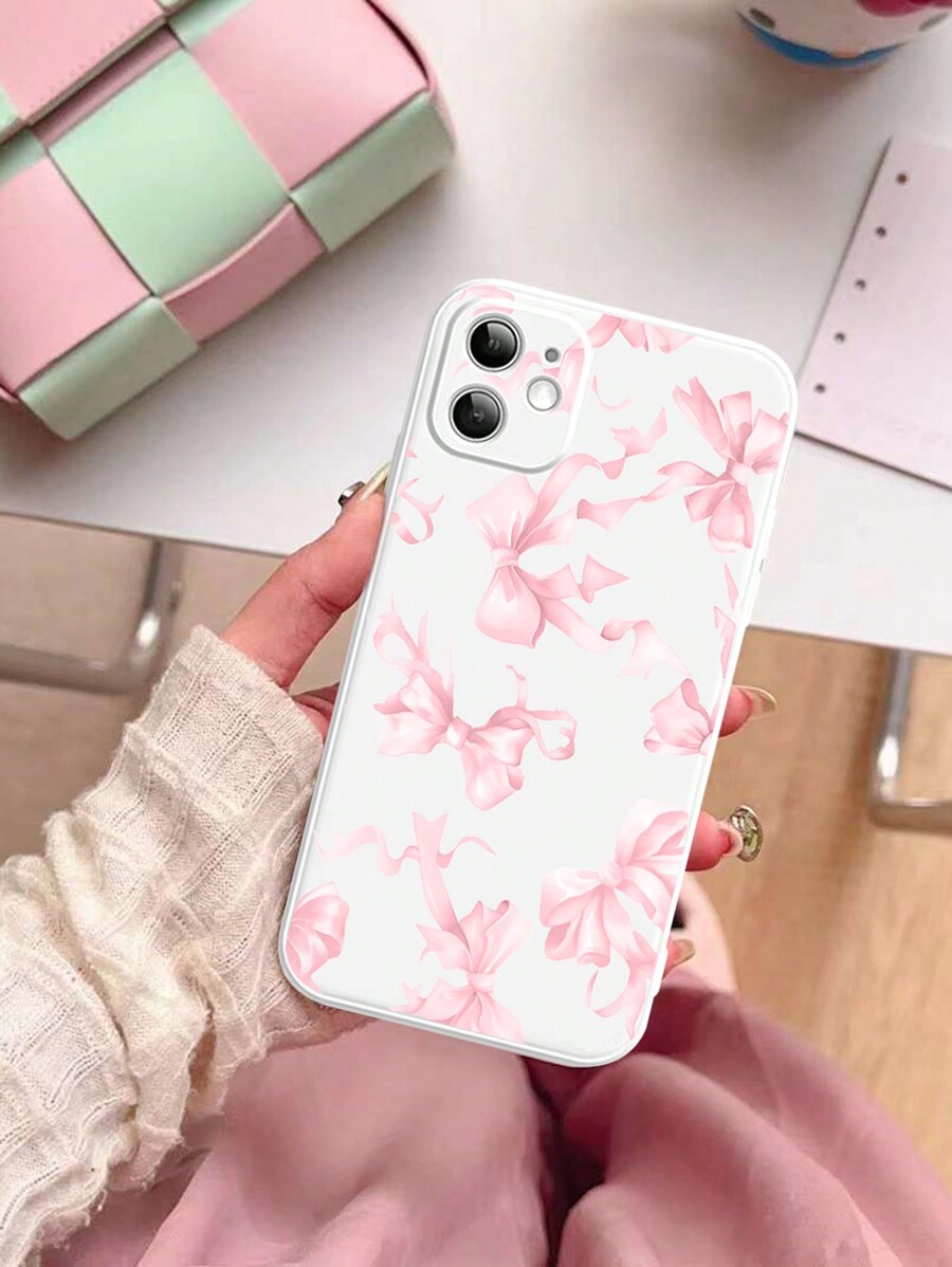 Kawaii Silk Floating Bowknot Hand-Painted White Phone Case Silicone Protective Cover Compatible With IPhone 12, 13, 14 Series And Similar Models