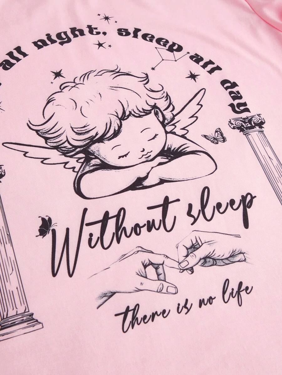 Kawaii Slogan Figure Graphic PJ Set