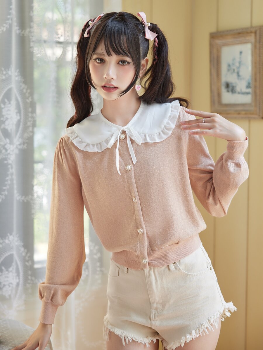 Kawaii Solid Pearls Button Front Cardigan Without Dickey Collar