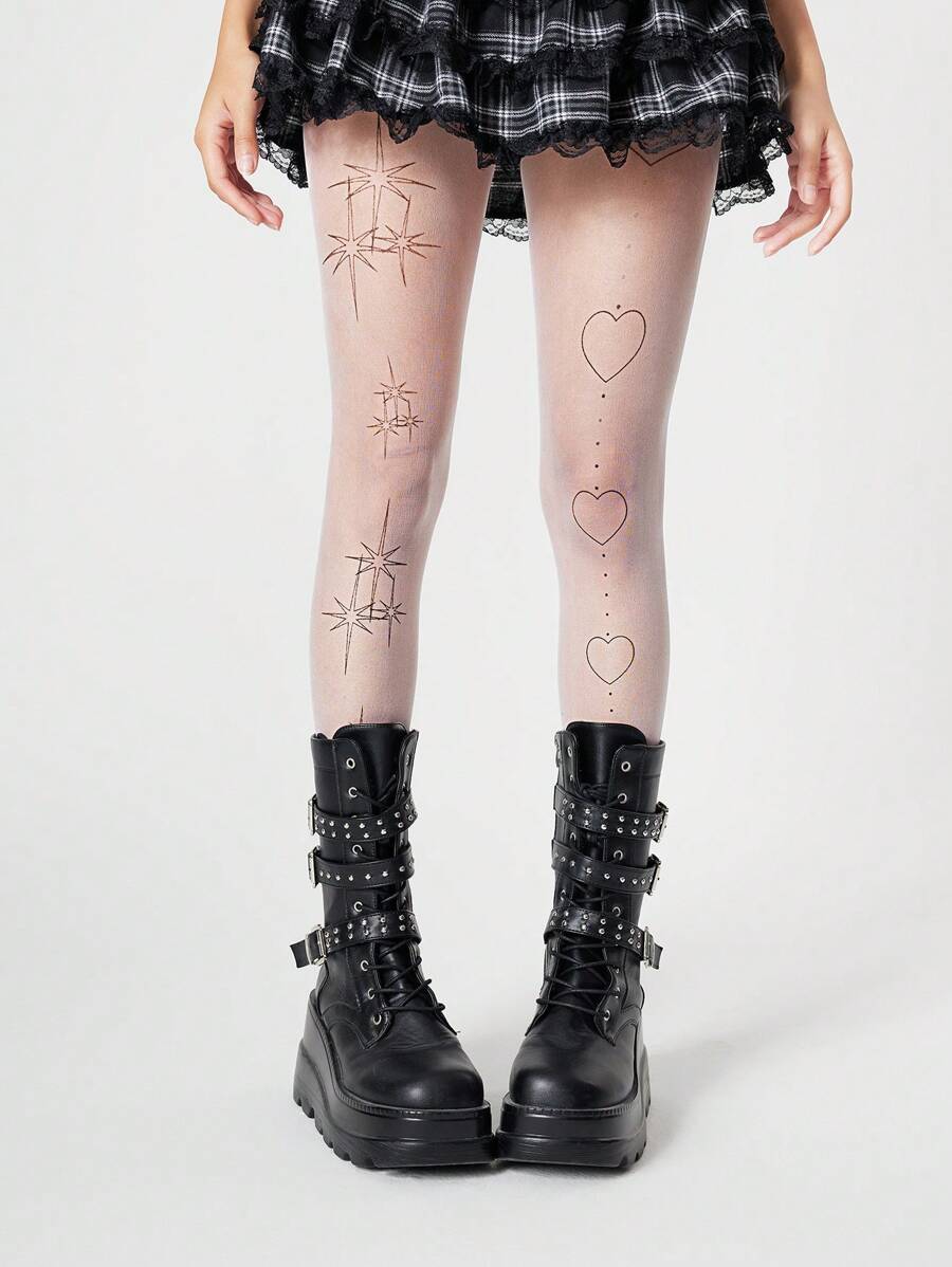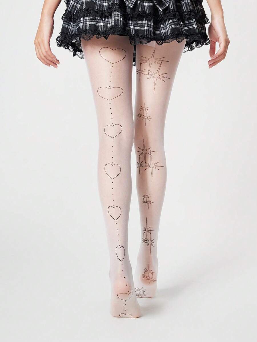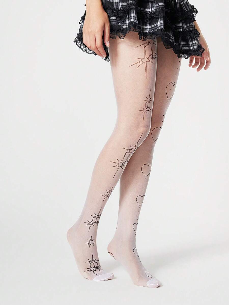Kawaii Star & Heart Printed Pantyhose, Feminine Ballet Style Tight/Leggings, Spring/Summer