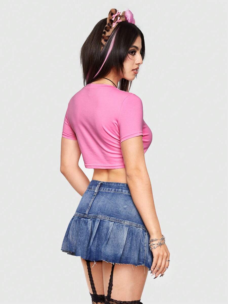 Kawaii Star & Letter Printed Cropped T-Shirt