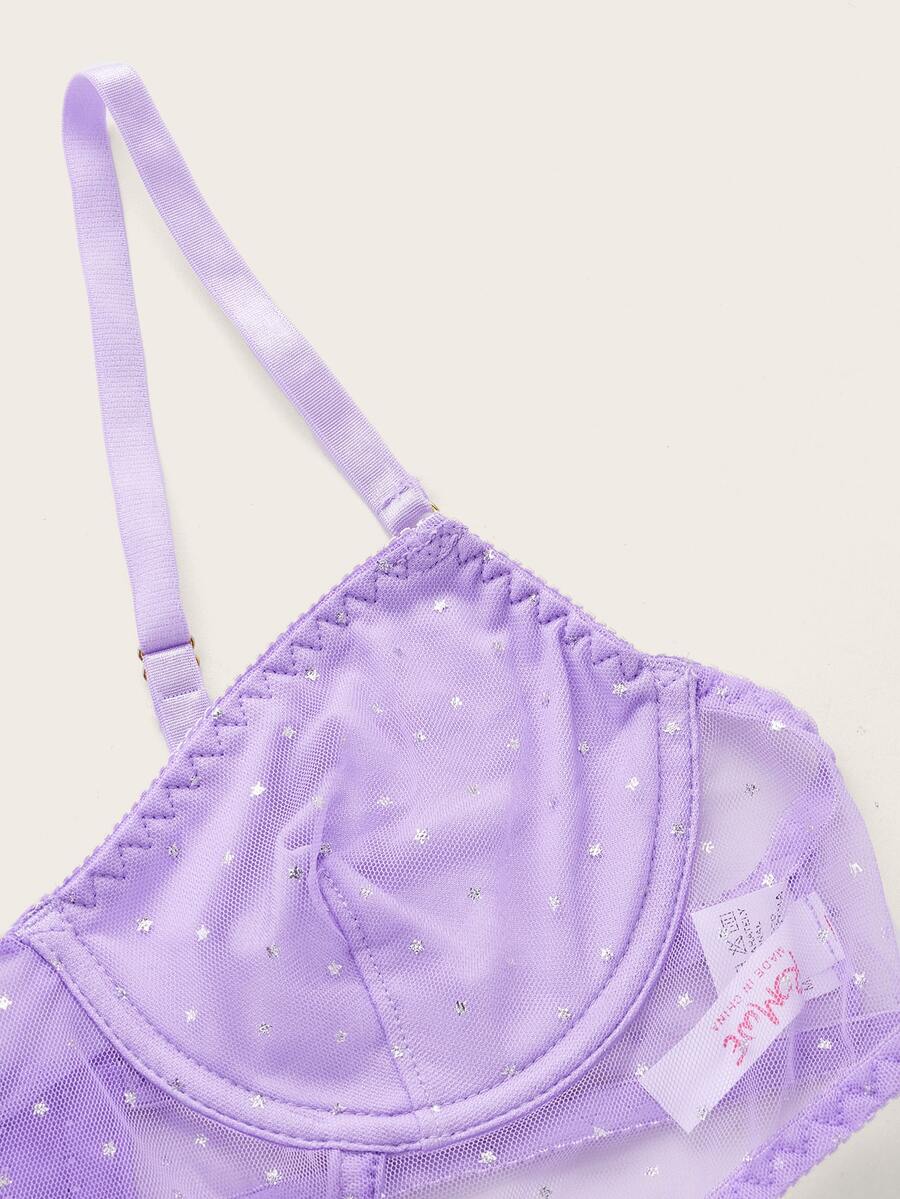 Kawaii Star Print Contrast Mesh Push Up Bra