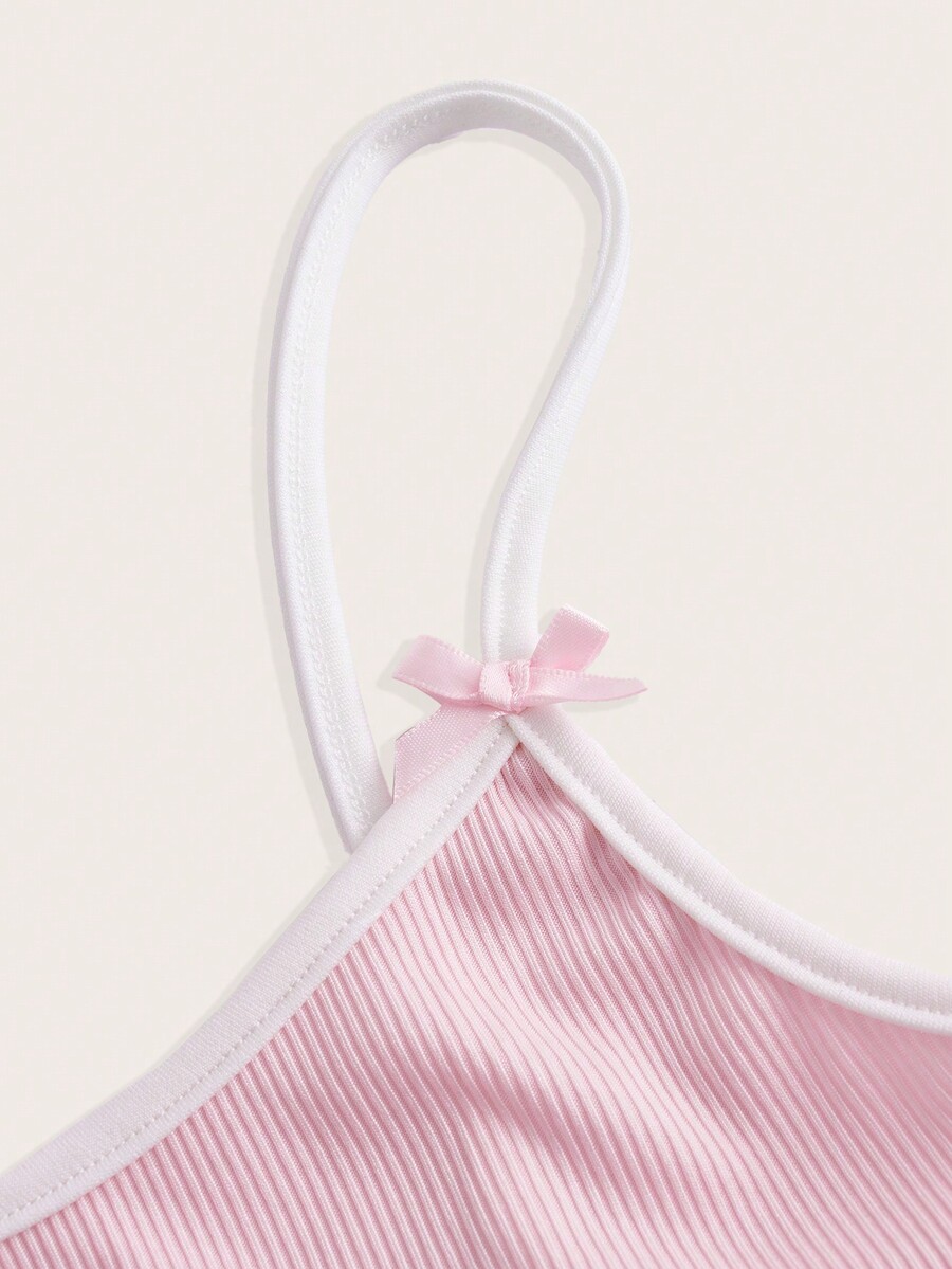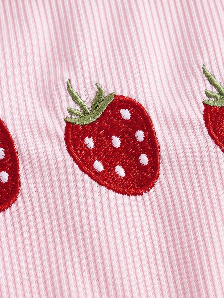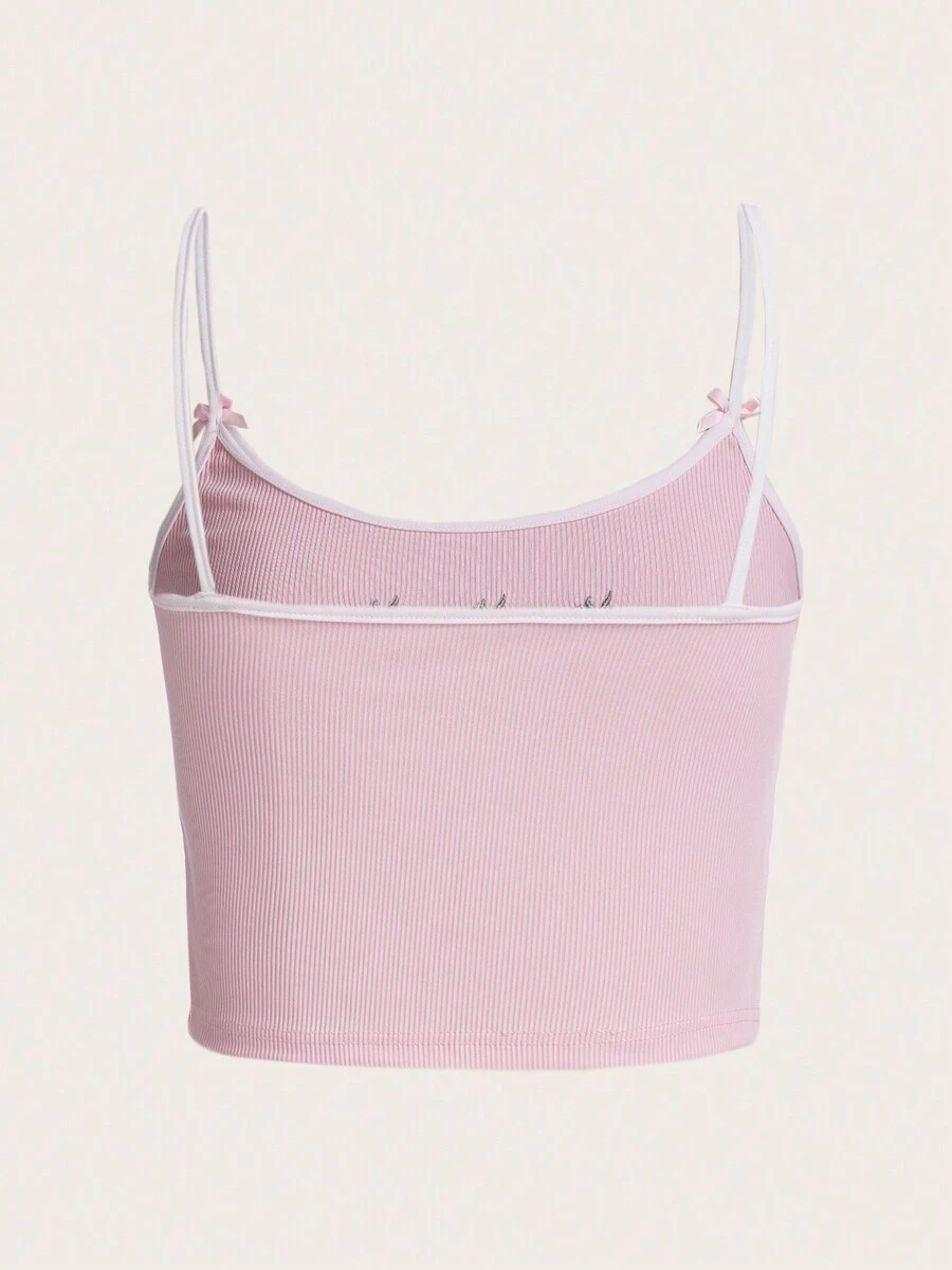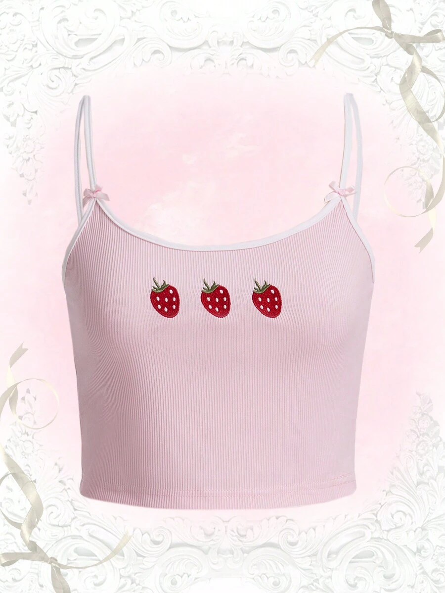 Kawaii Strawberry Embroidery Contrast Binding Cami Top