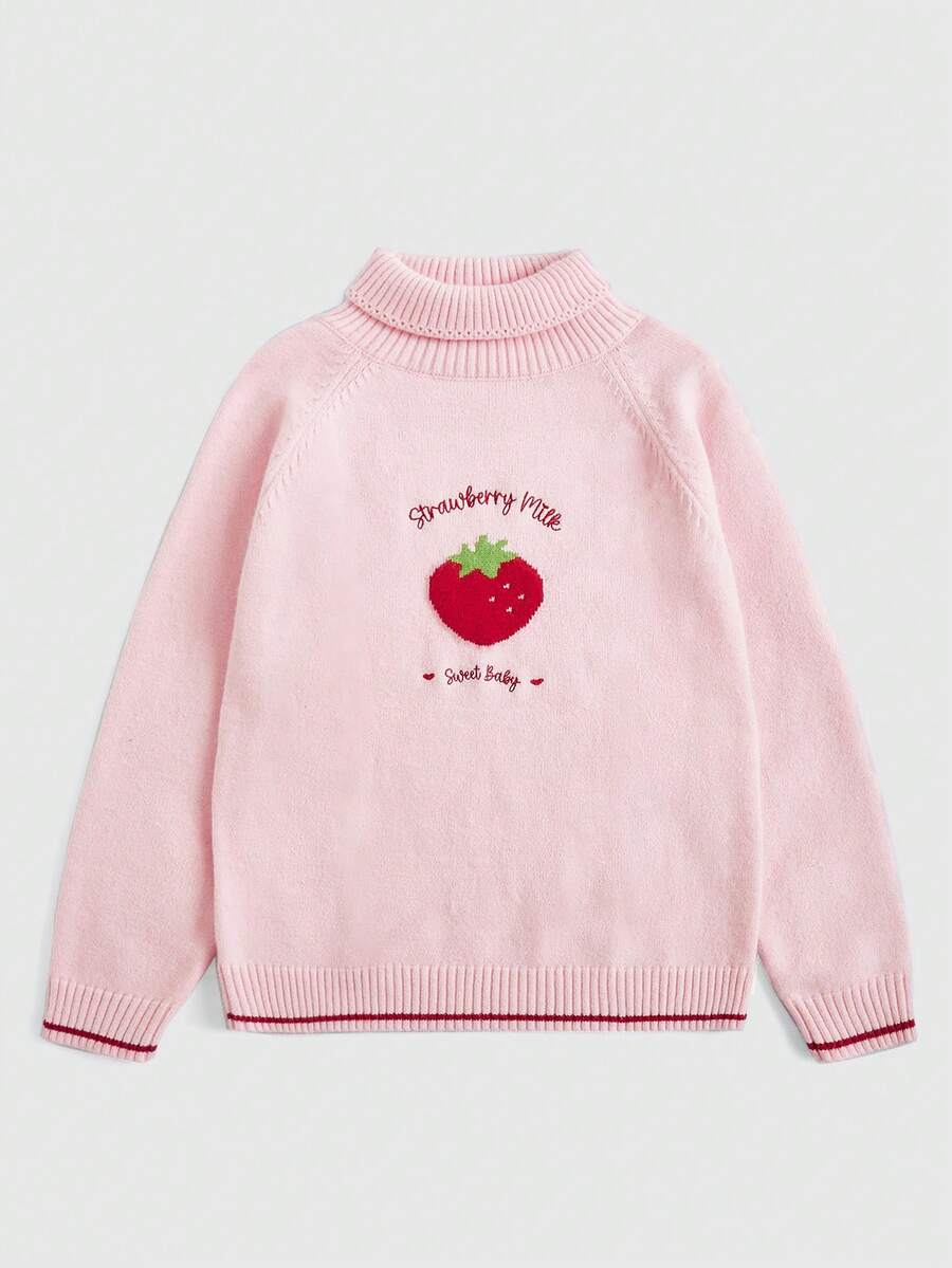 Kawaii Strawberry Pattern Turtleneck Raglan Sleeve Sweater