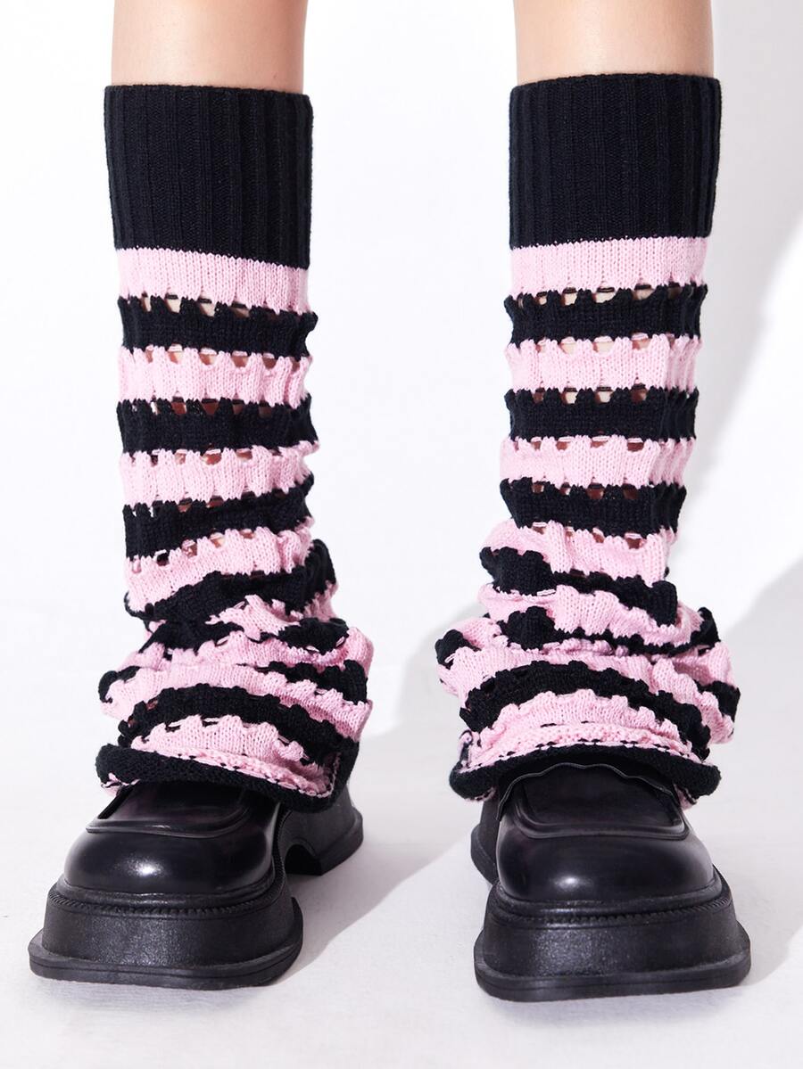 Kawaii Striped Pattern Hollow Out Leg Warmers