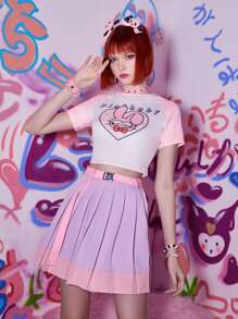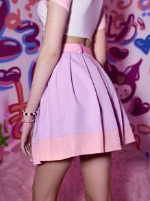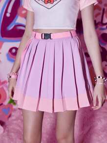 Kawaii Two Tone Pleated Skirt With Buckled Belt