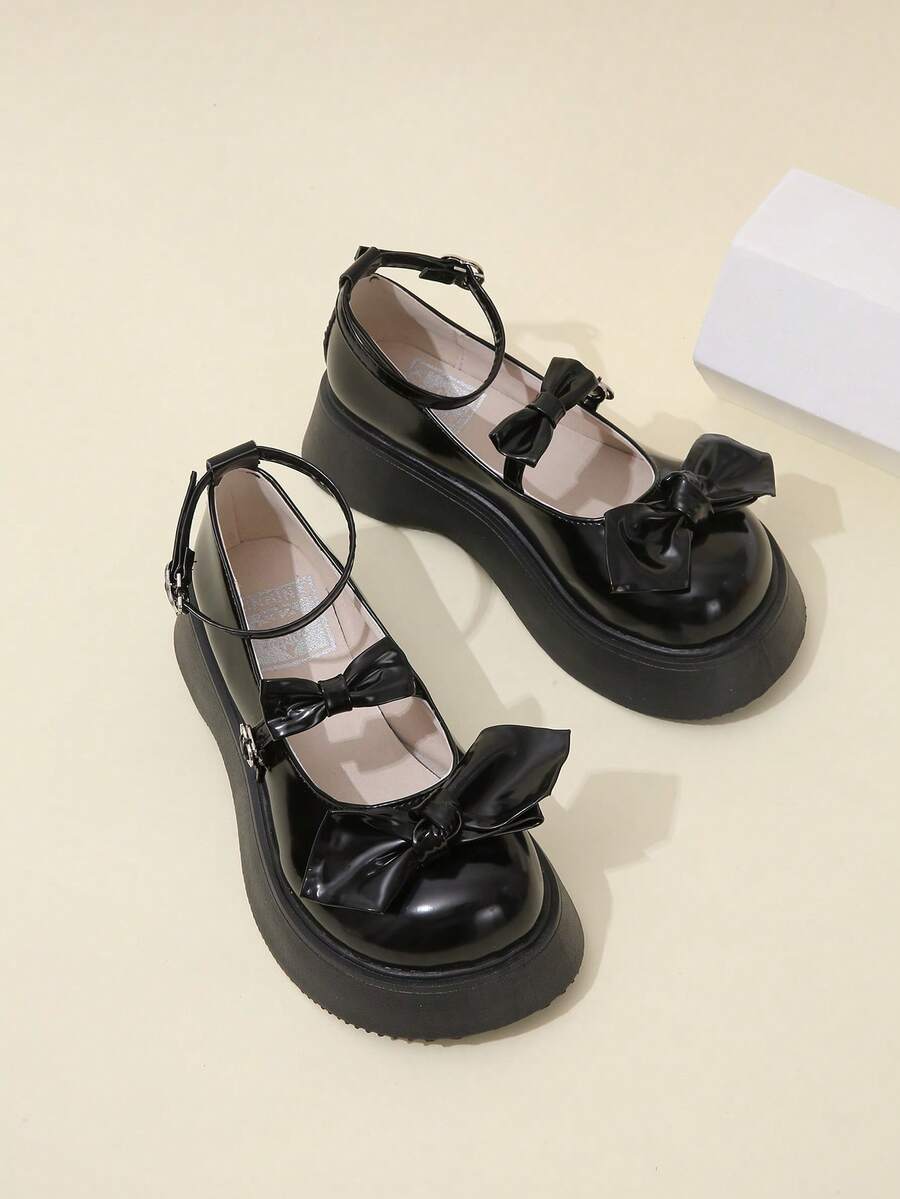 Kawaii Women Bow Decor Flatform Mary Jane Shoes, Preppy Outdoor Flatform Shoes