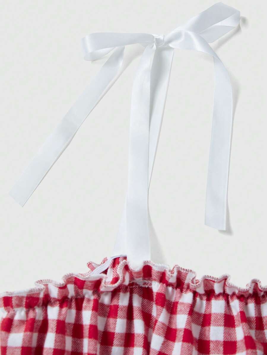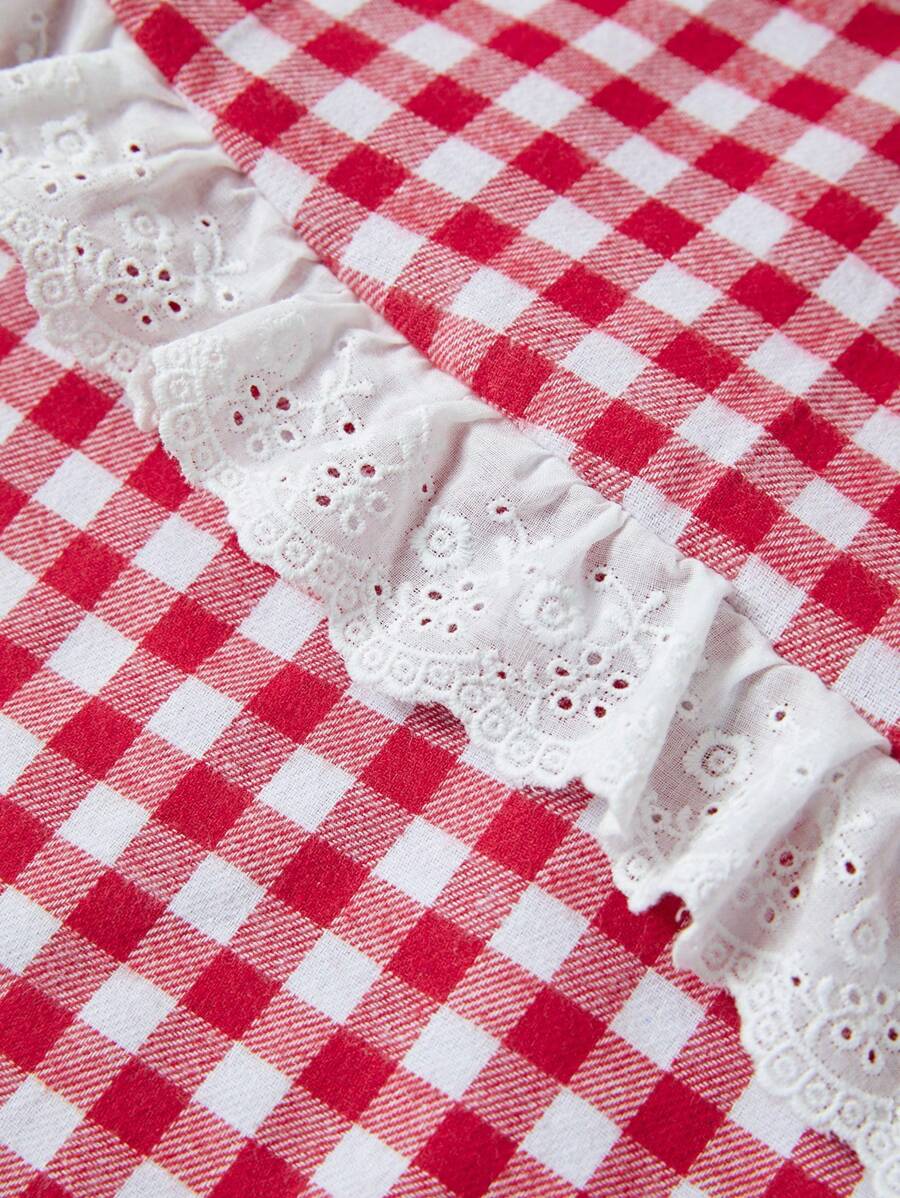 Kawaii Women'S Rural Red Plaid Pattern Long Cami Dress