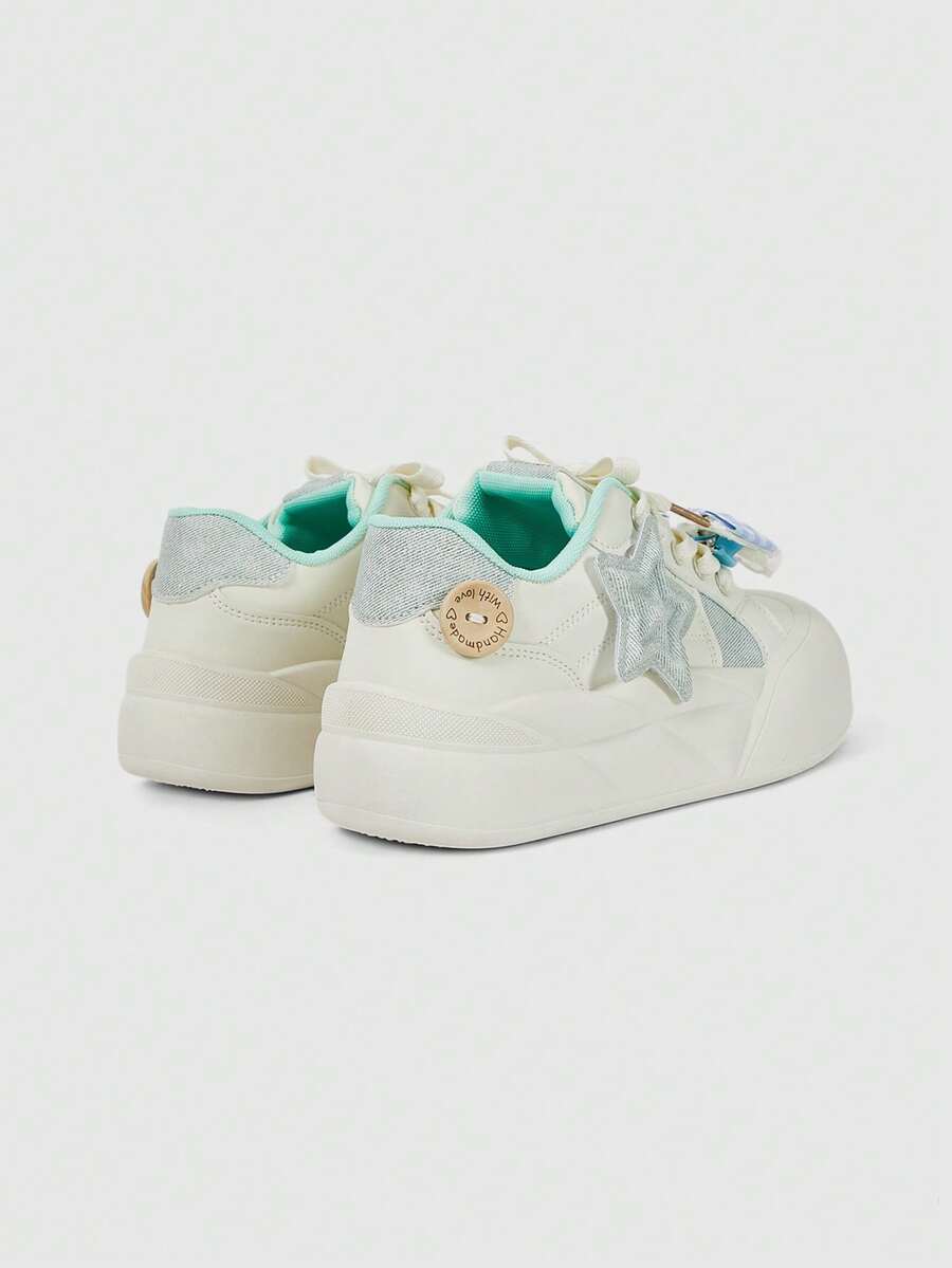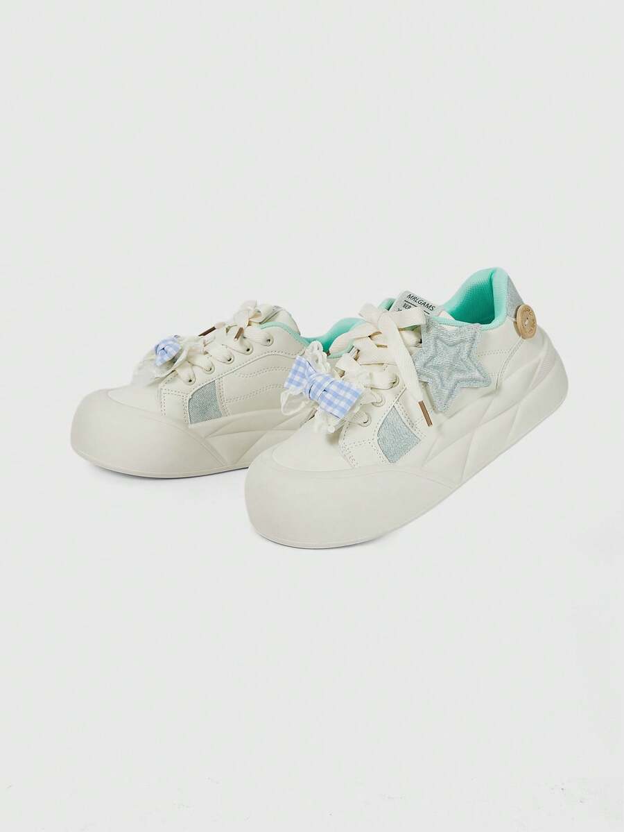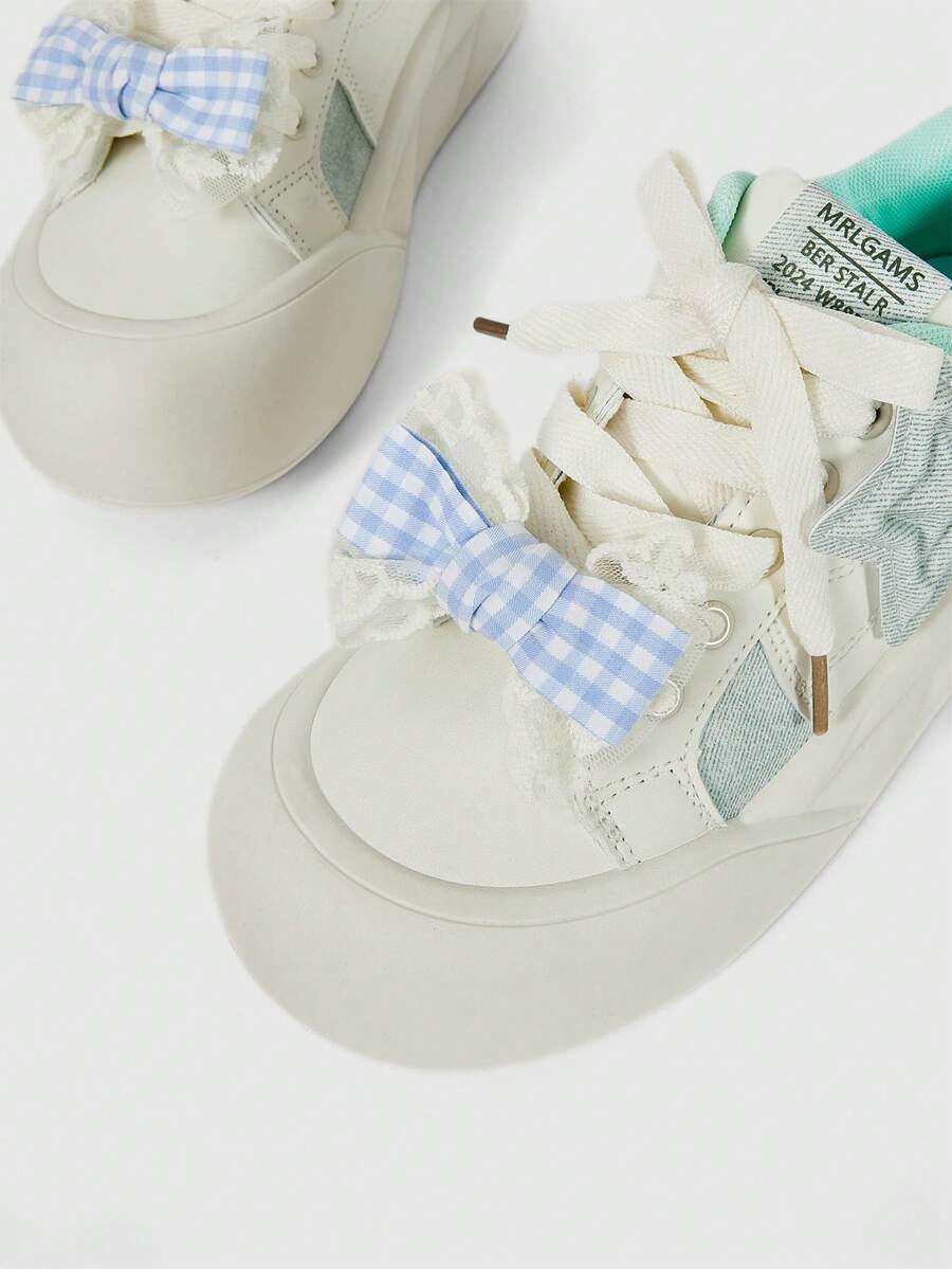 Kawaii Women's Blue Bow Lace-Up Casual Soft-Sole Lightweight Running Shoes, Mary Jane Pumps, Sweet Flats