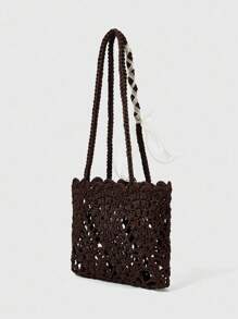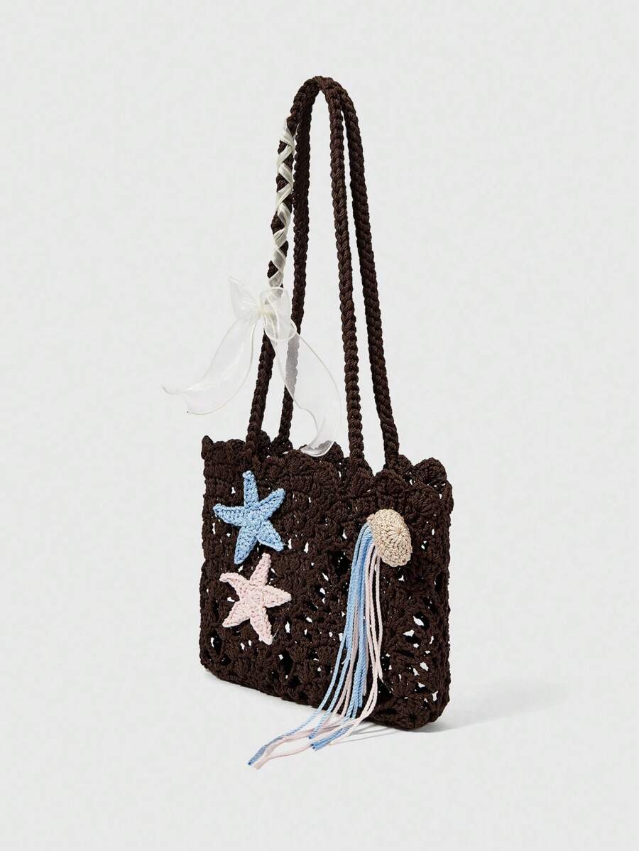 Kawaii Women's Bohemian Style Handmade Crochet One Shoulder Bag With Starfish Decor, Suitable For Vacation