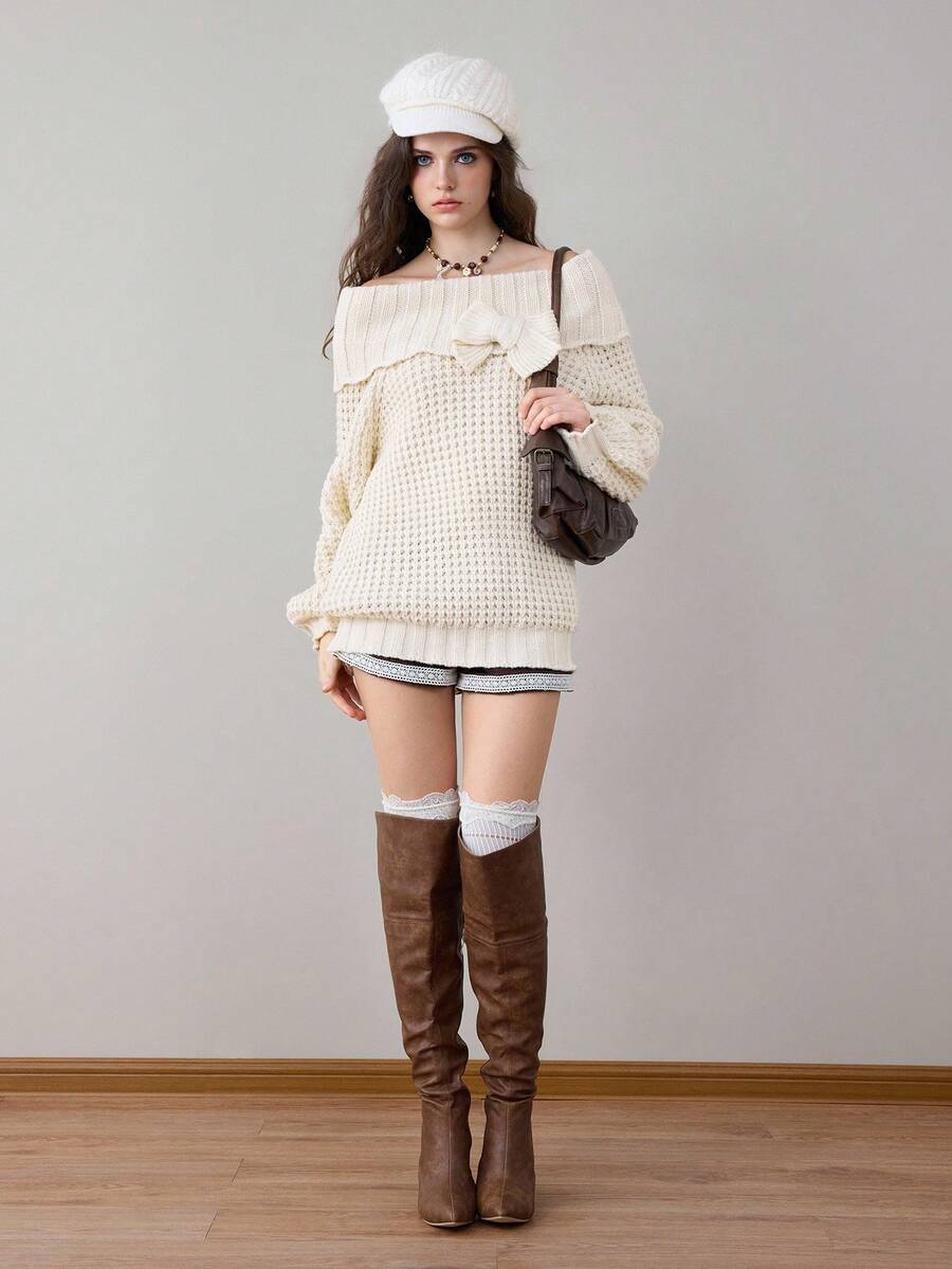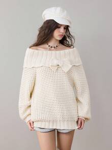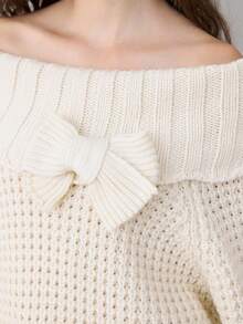 Kawaii Women's Bowknot Decor Off-Shoulder Sweater
