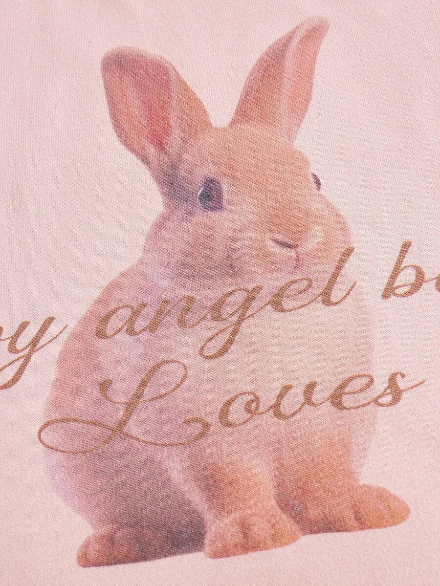 Kawaii Women's Bunny And Slogan Print Short Sleeve T-Shirt