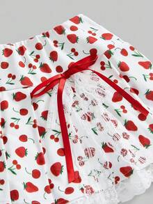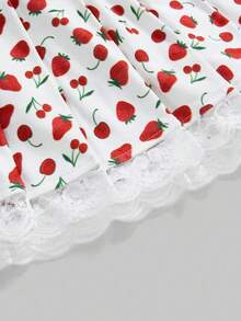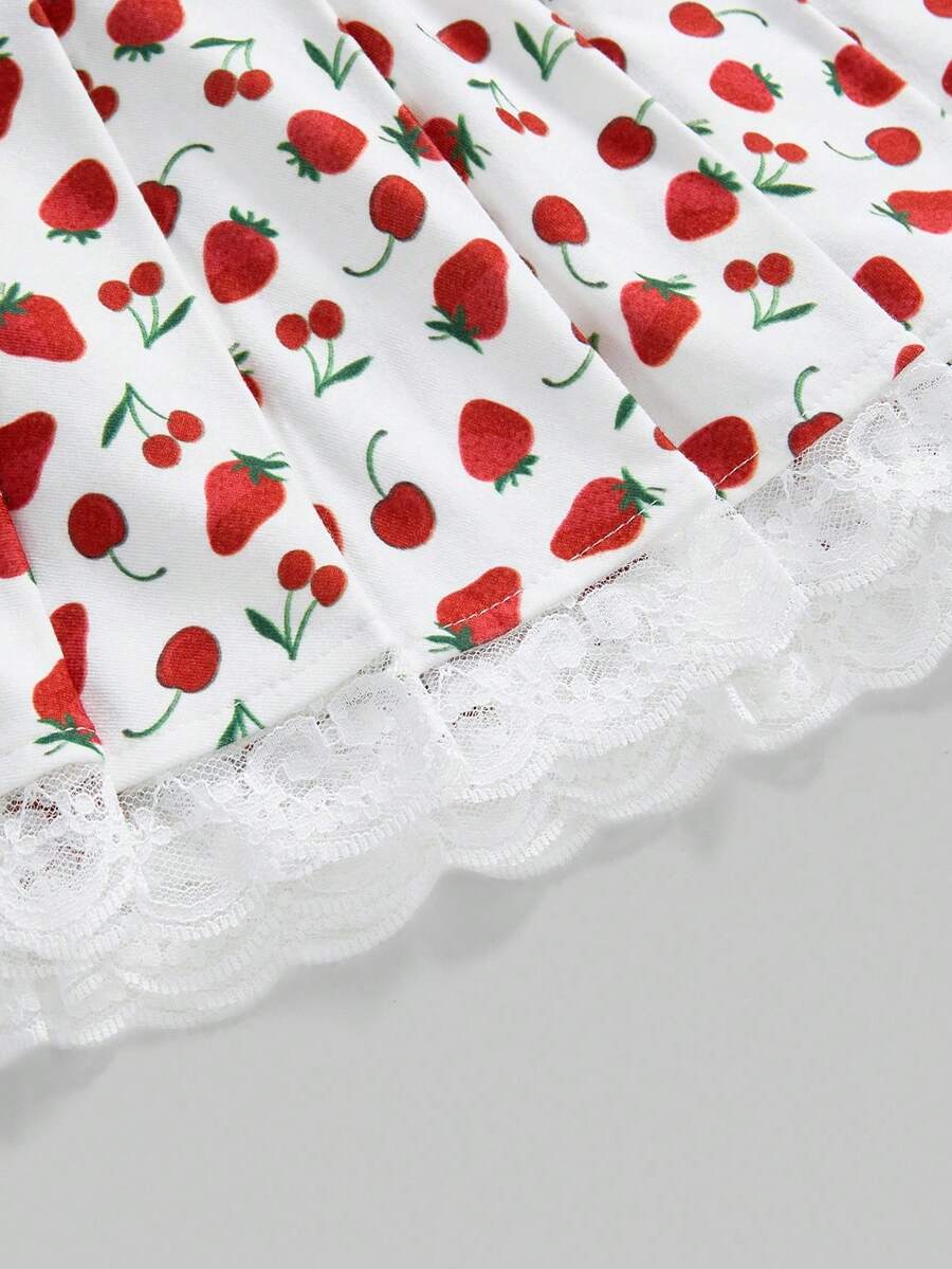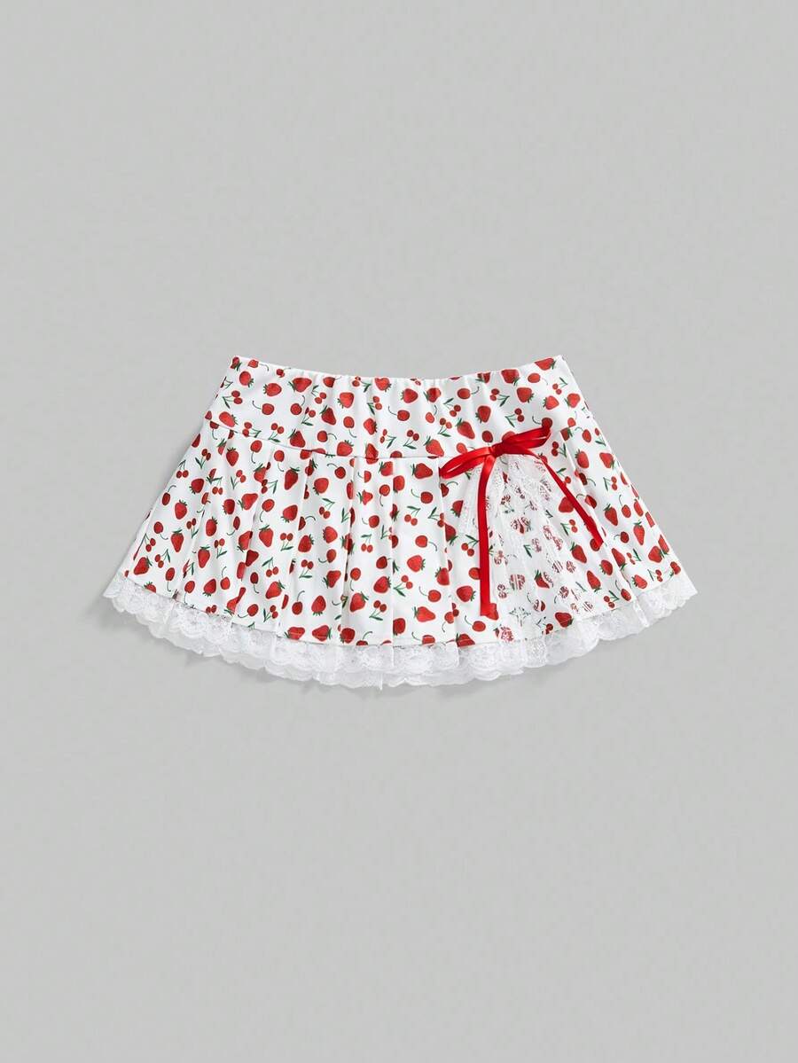 Kawaii Women's Casual Strawberry Print Pleated A-Line Mini Skirt, Summer