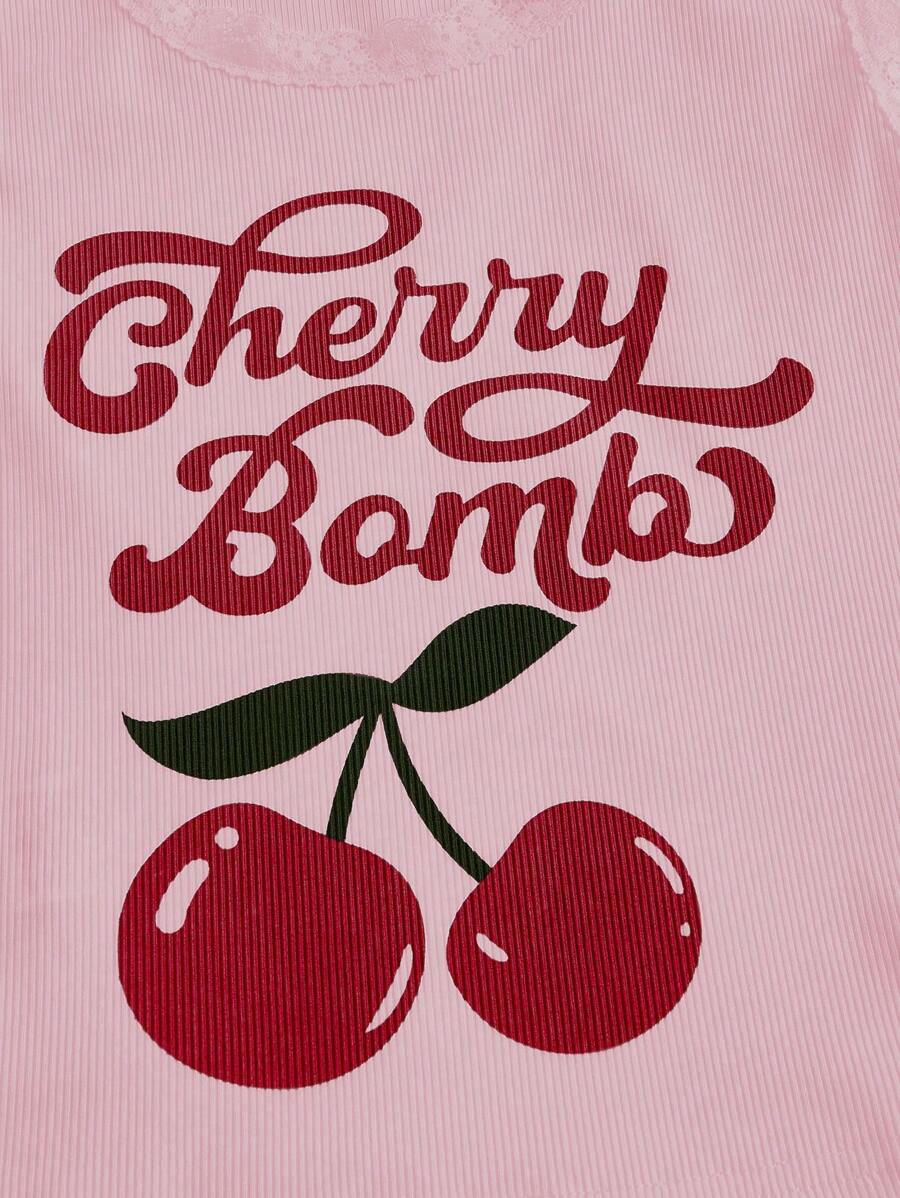 Kawaii Women's Cherry & Letter Print Tank Top Cherry Bomb, School