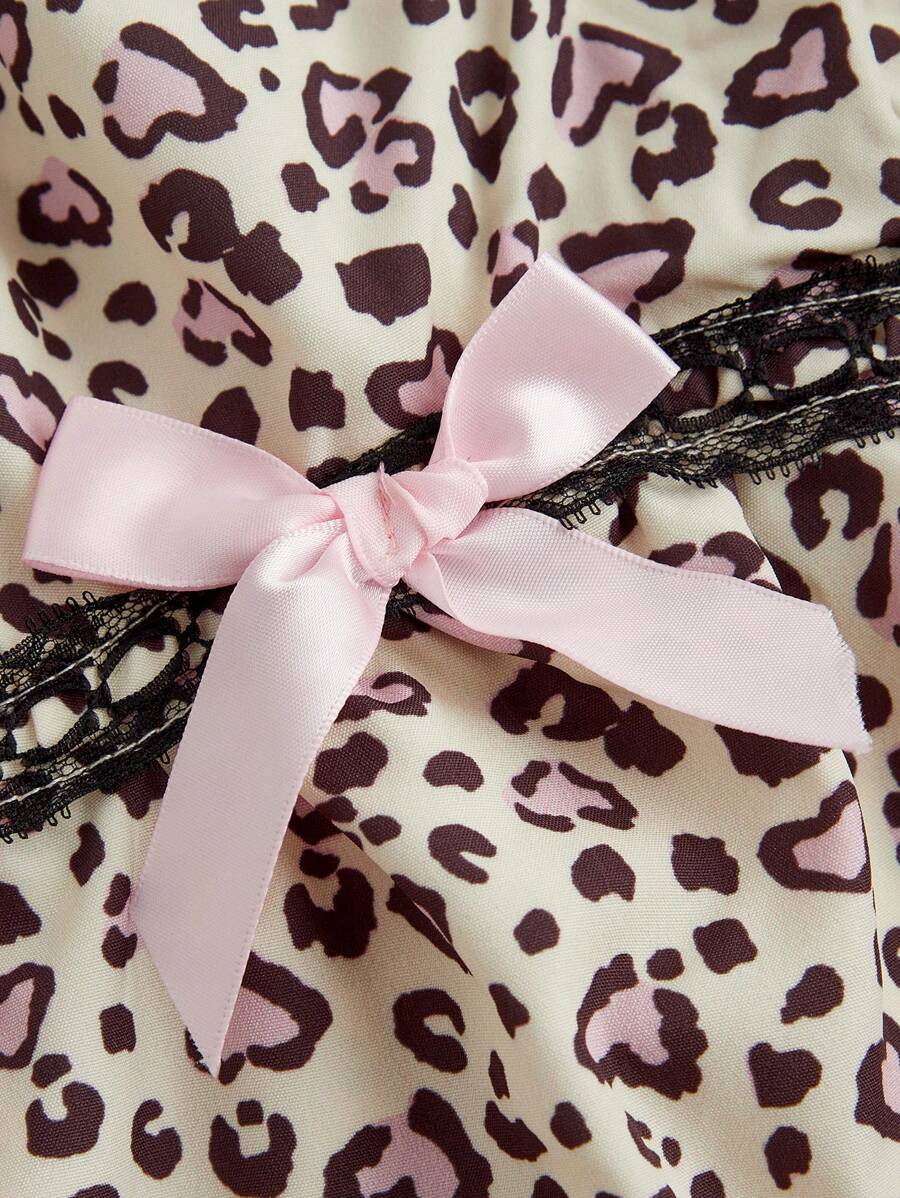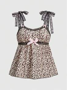 Kawaii Women's Contrast Lace Leopard Print Camisole Top, School
