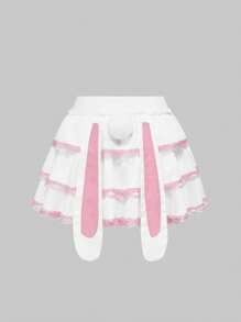 Kawaii Women's Cute Bunny Ear Lace Patchwork Ruffle Hem Mini Skirt