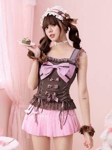 Kawaii Women's Cute Girly Colorful Ribbon Bow Decor Camisole