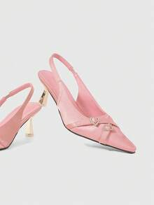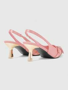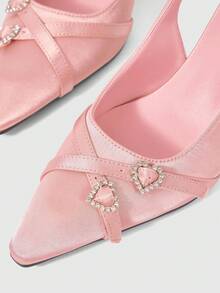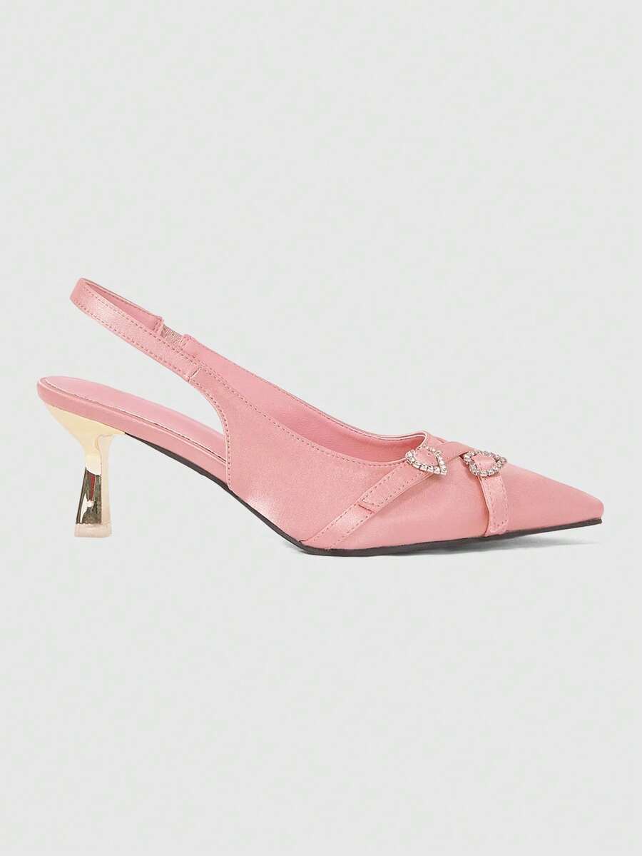 Kawaii Women's Cute Kitty Printed High Heel Sandals, Pink, Spring/Summer Women's Pointed Toe Sexy Heart Rhinestone Decor Slip-On High Heel Shoes, Party & Gold Mini Block Heel