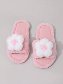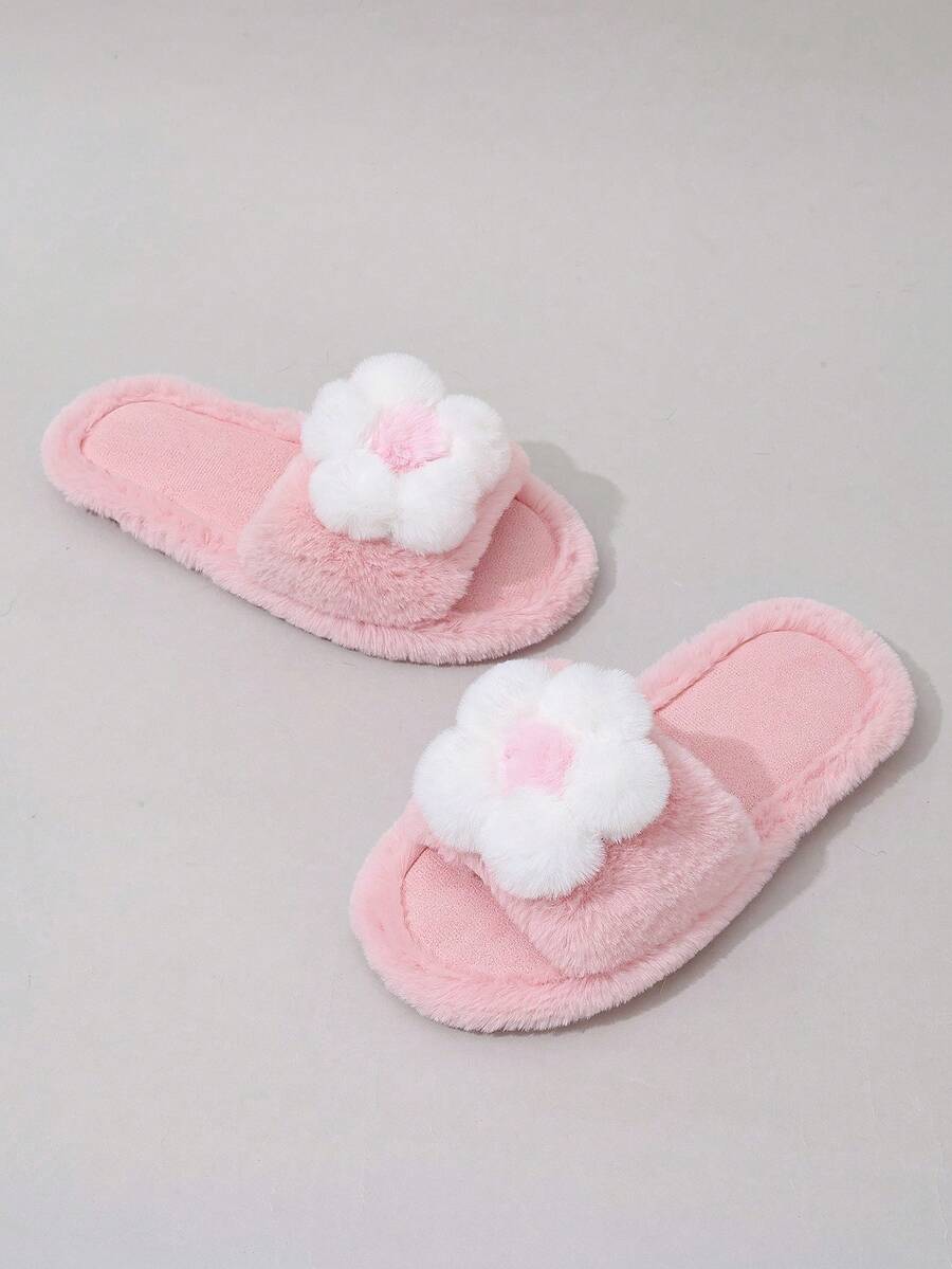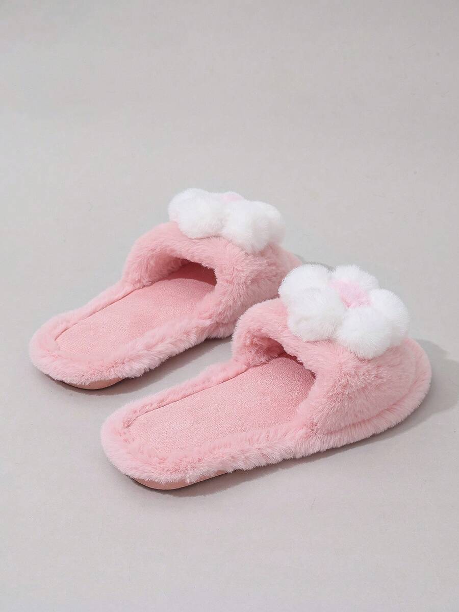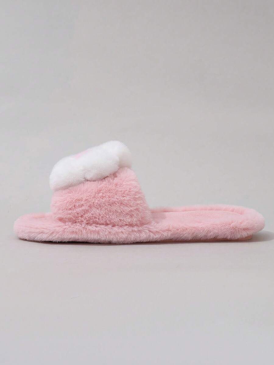 Kawaii Women's Cute Pink Fluffy Slippers, Outdoor Wear, Ins 2024 Autumn/Winter New Warm Plush Indoor House Slippers For Christmas And New Year Holiday Vibe Fall And Winter