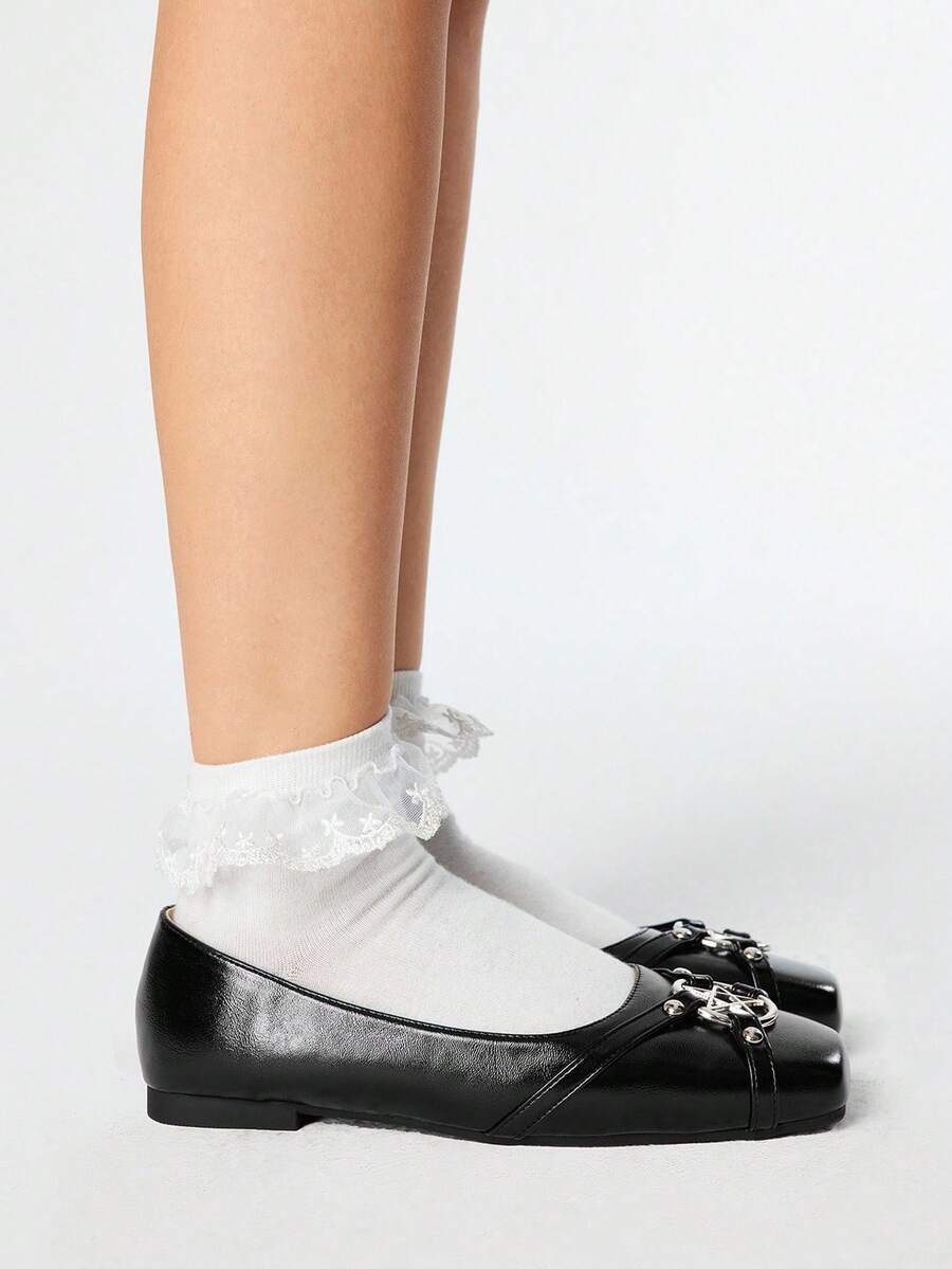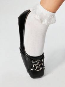 Kawaii Women's Fashion Square Toe Star Rivets Design Flats, Sweet Punk Style Casual Shoes Pink, Suitable For Party, Daily Wear, Evening Dress, Comfortable & Versatile
