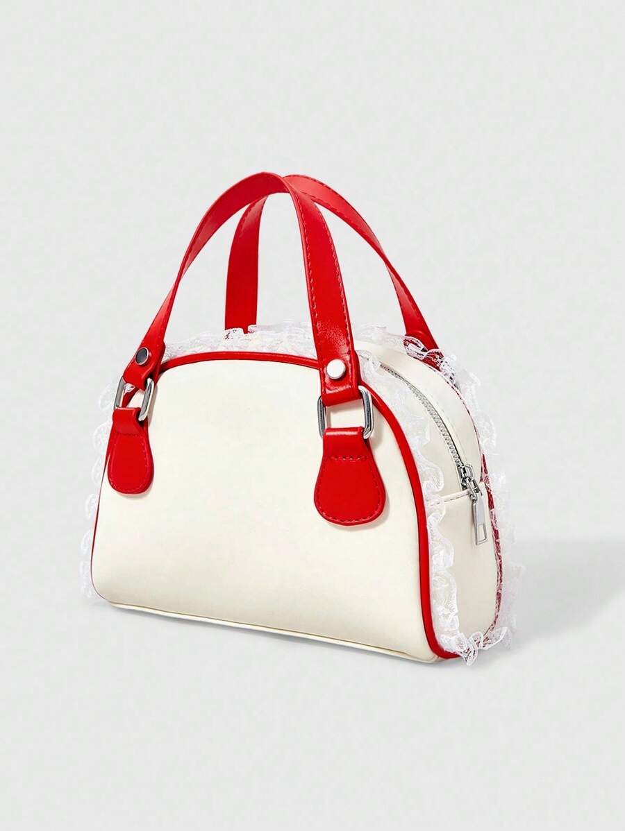 Kawaii Women's Fashion Versatile Lace Trim Bowlin Handbag