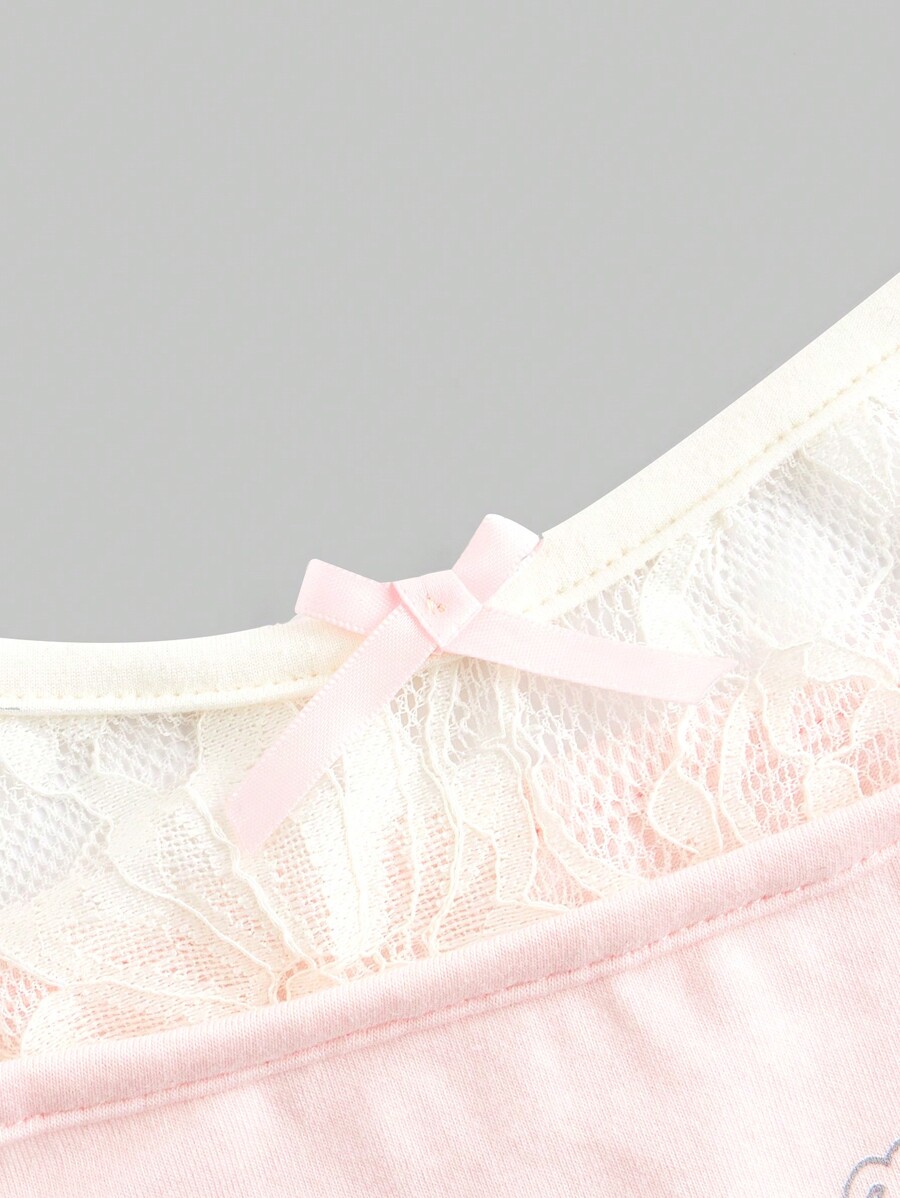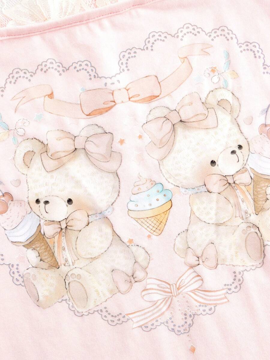 Kawaii Women's Himekaji 2 In 1 Contrast Lace Cute Style Heart Bear & Lace Bow T-Shirt, School