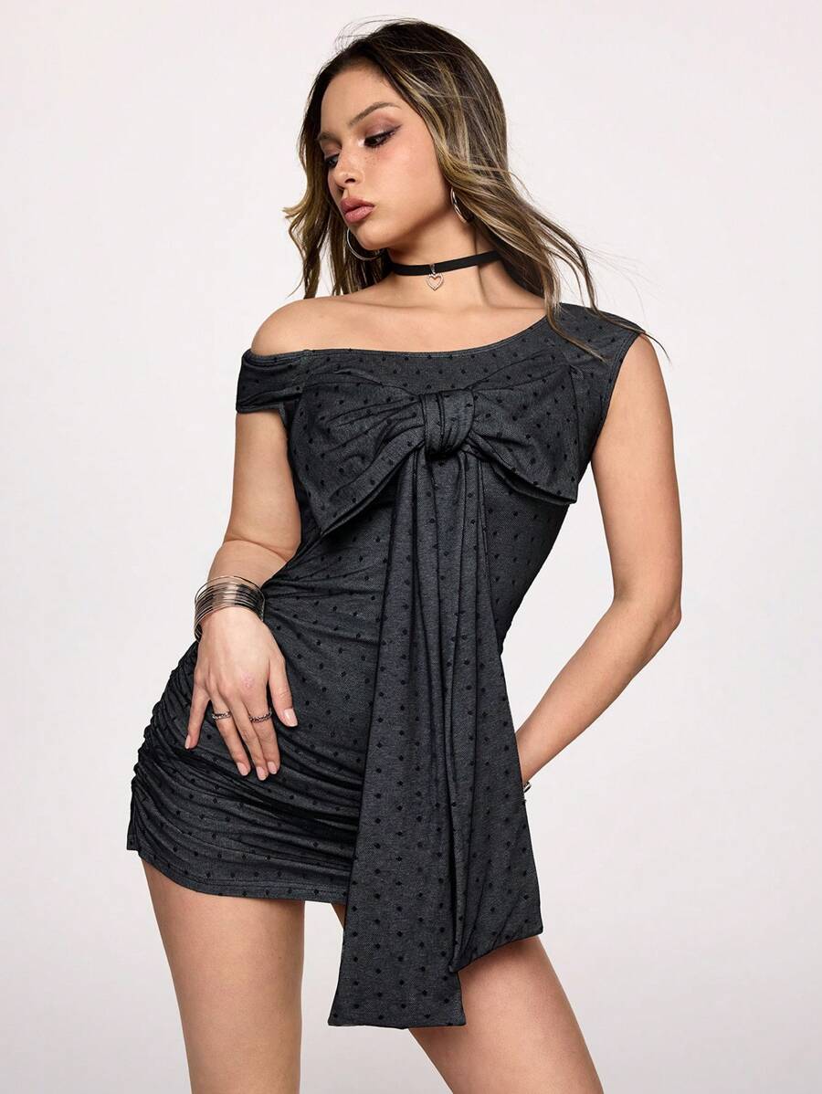 Kawaii Women's Loose Polka Dot Oversized Bow Shoulder T-Shirt
