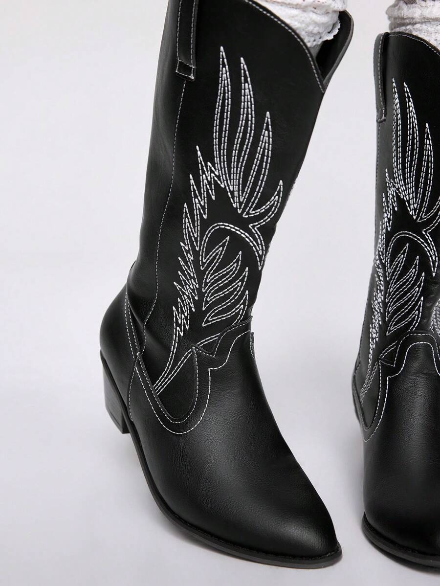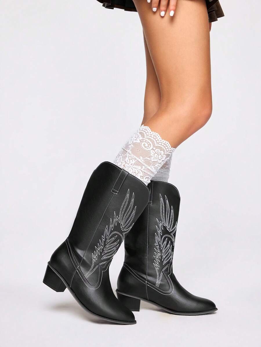 Kawaii Women's Pink Embroidered Mid-Calf Cowgirl Boots