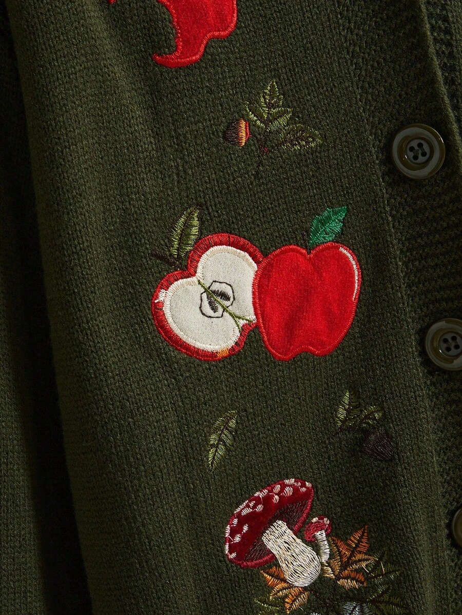 Kawaii Women's Retro Countryside Style Apple Leaf Embroidery Cardigan, Autumn