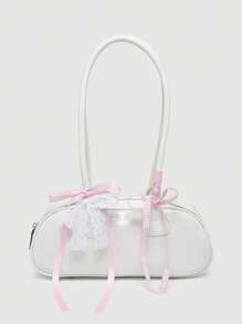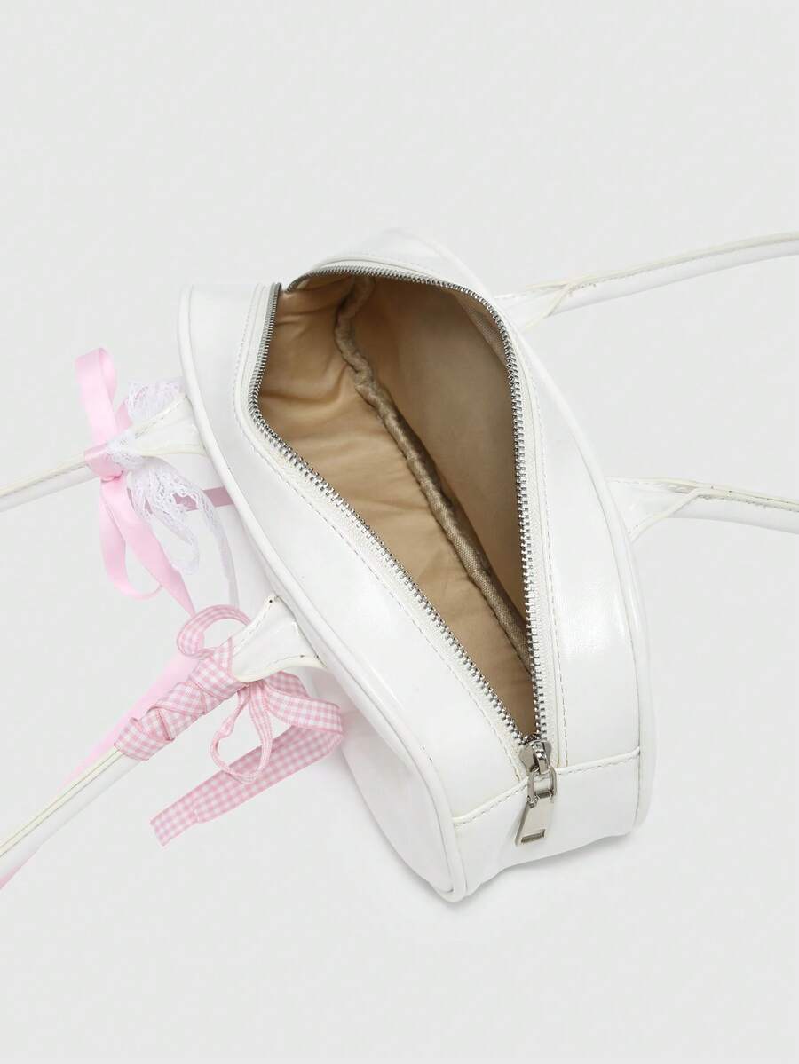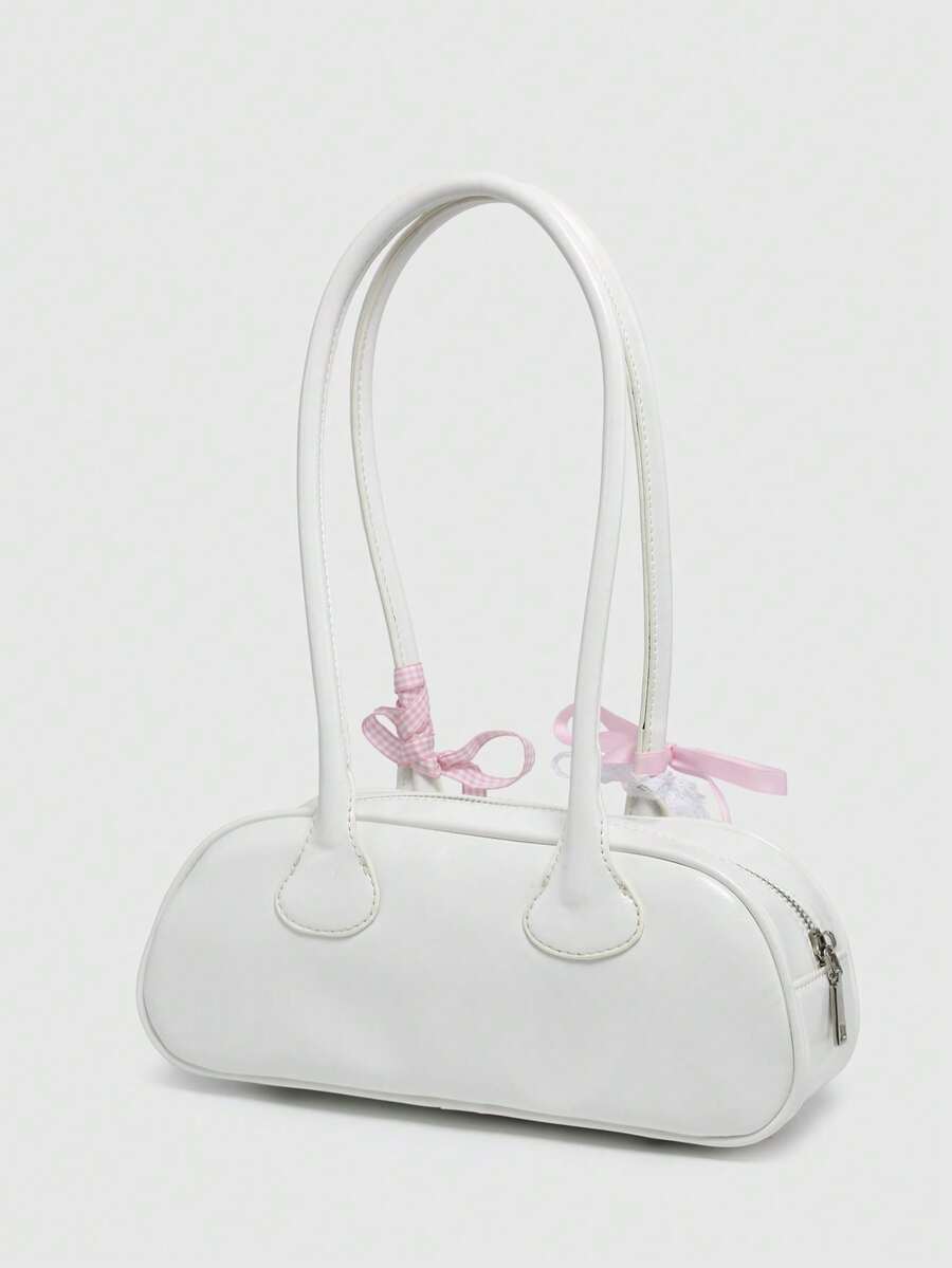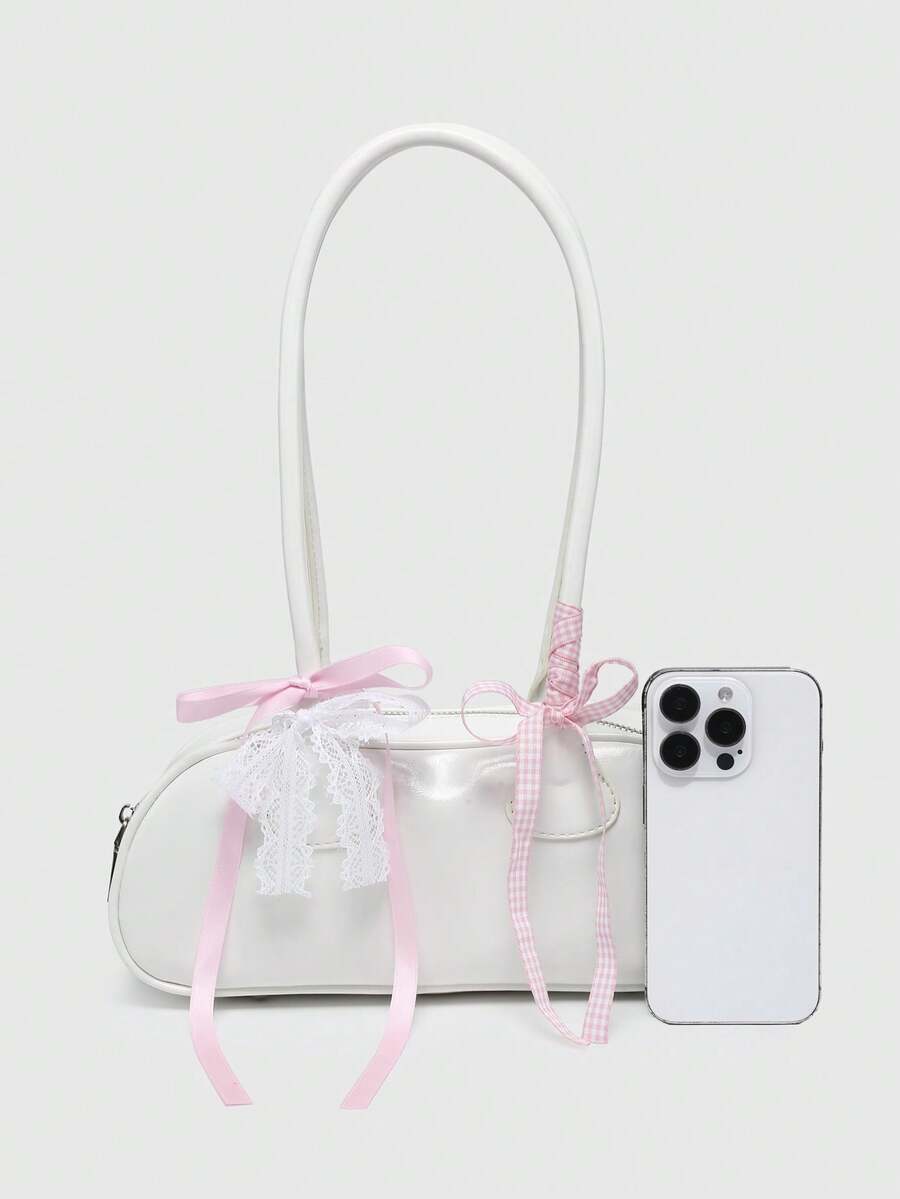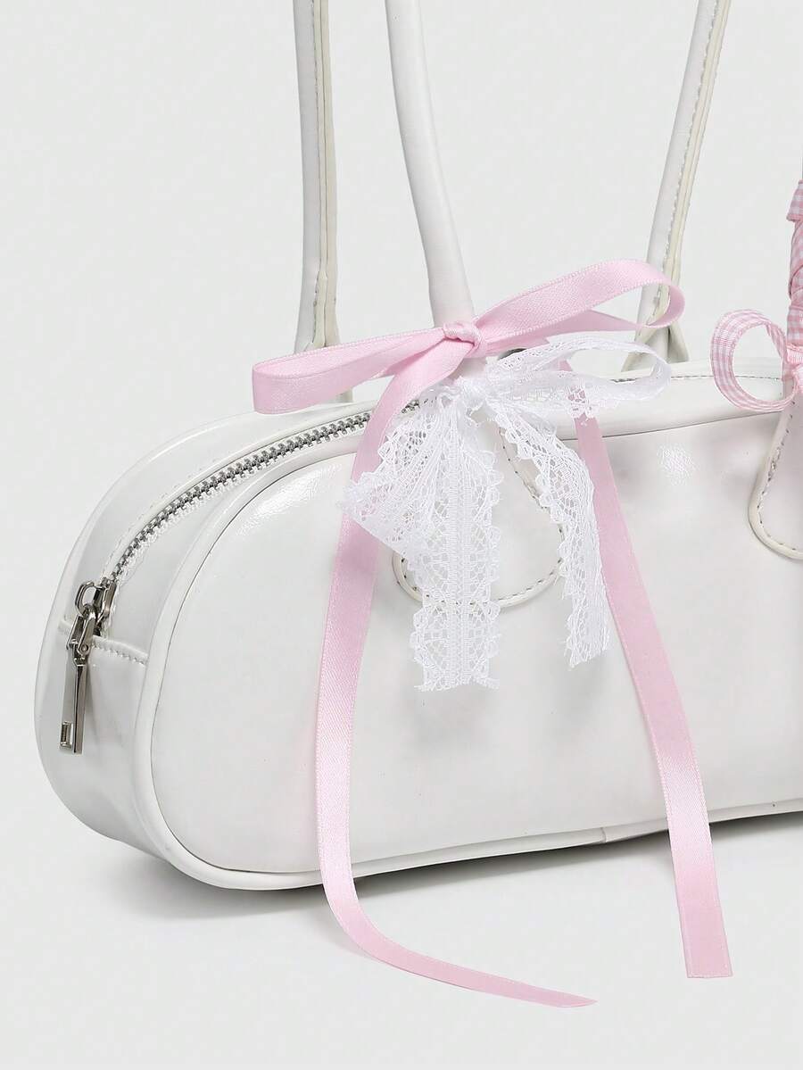 Kawaii Women's Retro Cute Plaid Bow Tie Cherry Heart Decoration Shoulder Underarm Boston Shoulder Bag