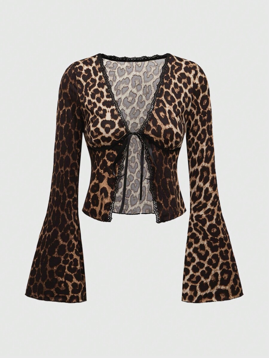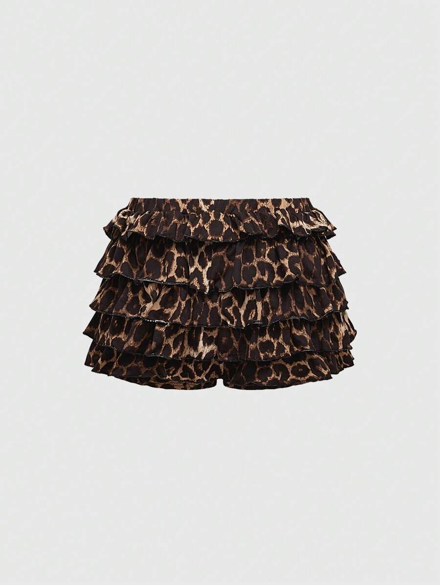 Kawaii Women's Retro Y2K Leopard Print Ribbon Tie Cardigan & Ruffle Hem Puff Shorts 2 Pieces Set