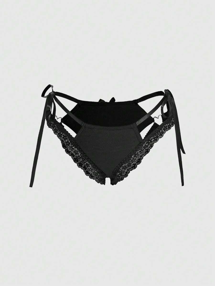 Kawaii Women's Sexy Heart Print Lace Trim Thong Panties