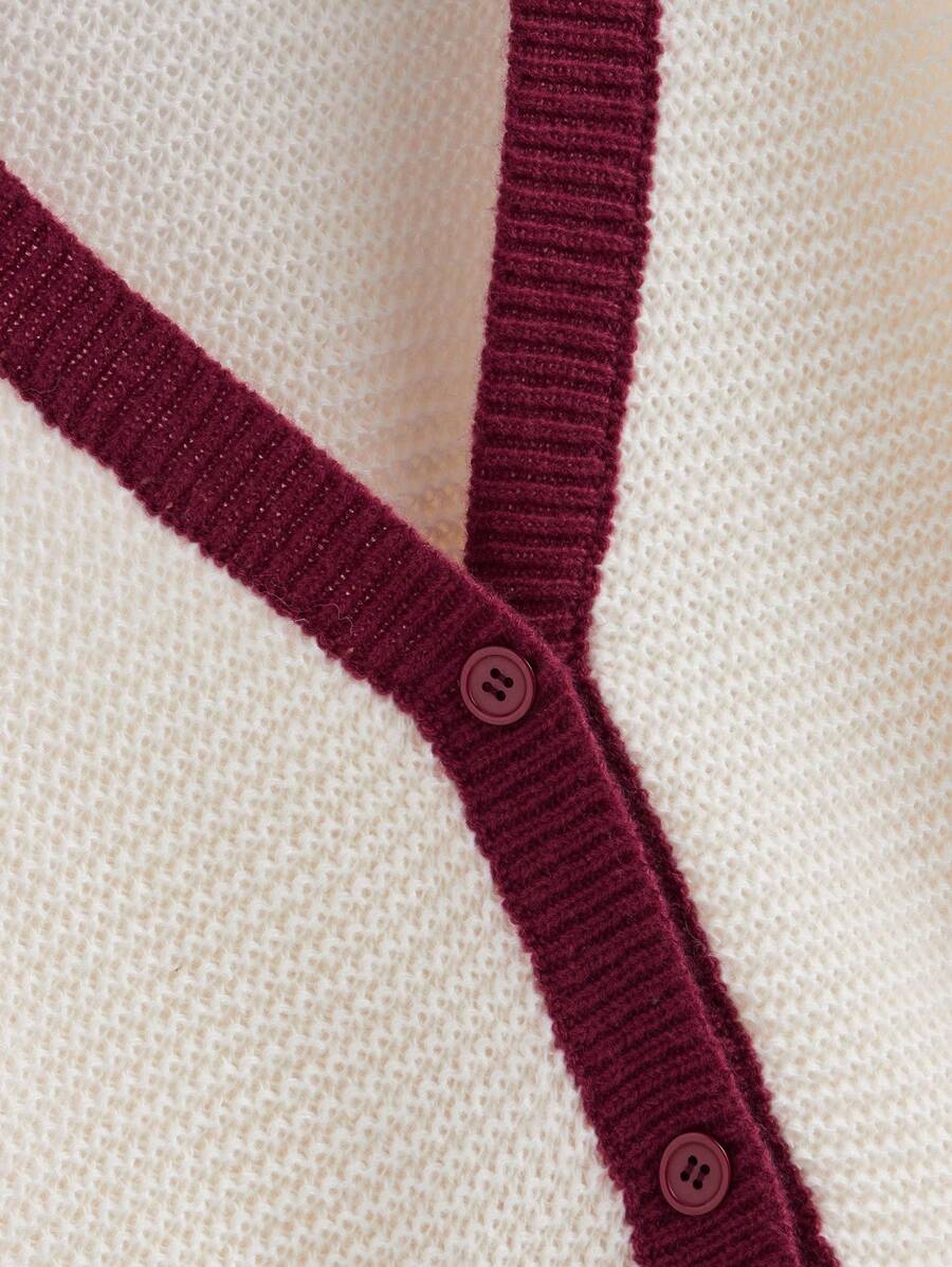 Kawaii Women's V-Neck Loose Casual Cardigan With Cherry & Letter Pattern, Long Sleeve, For Fall/Winter