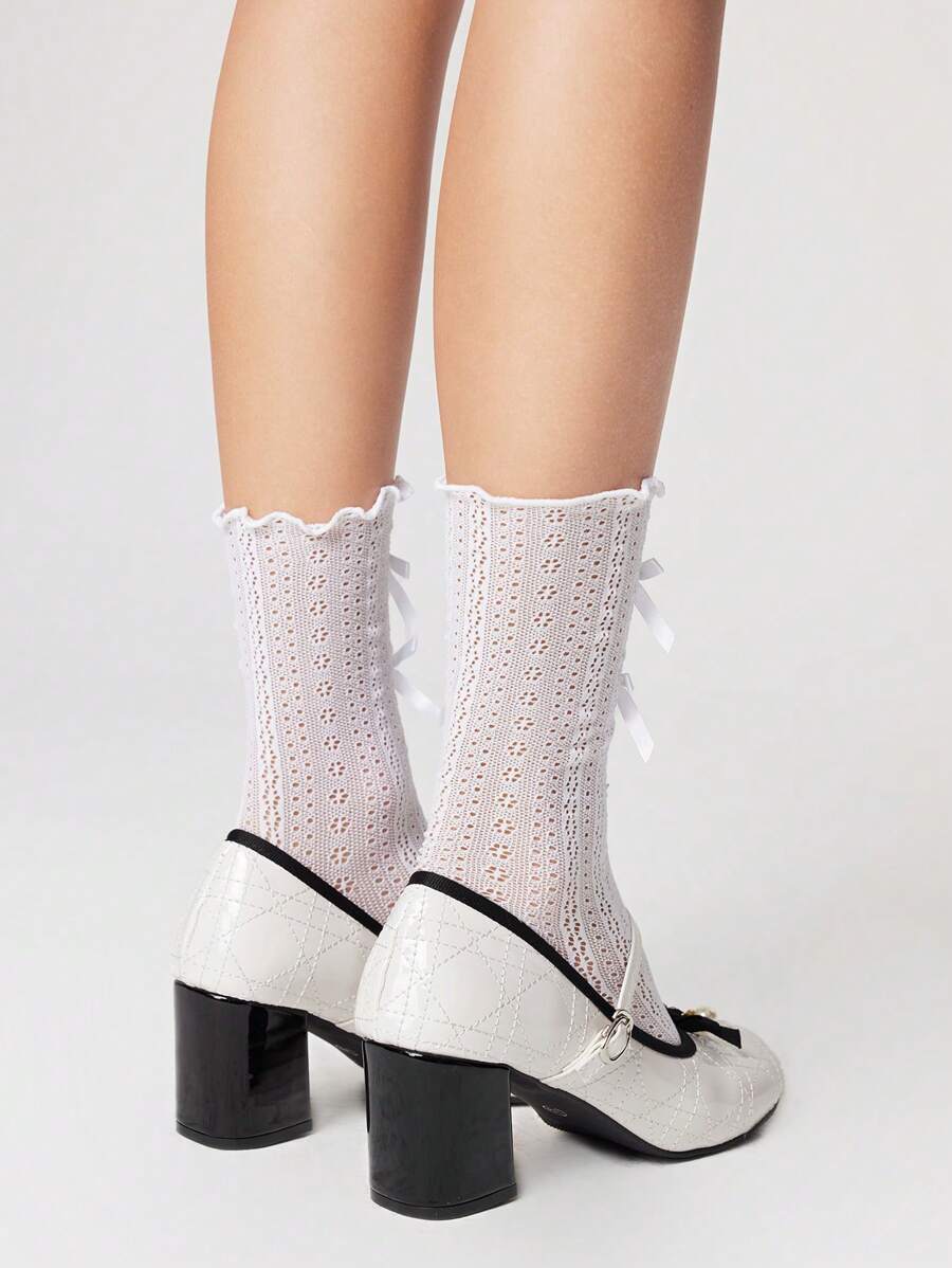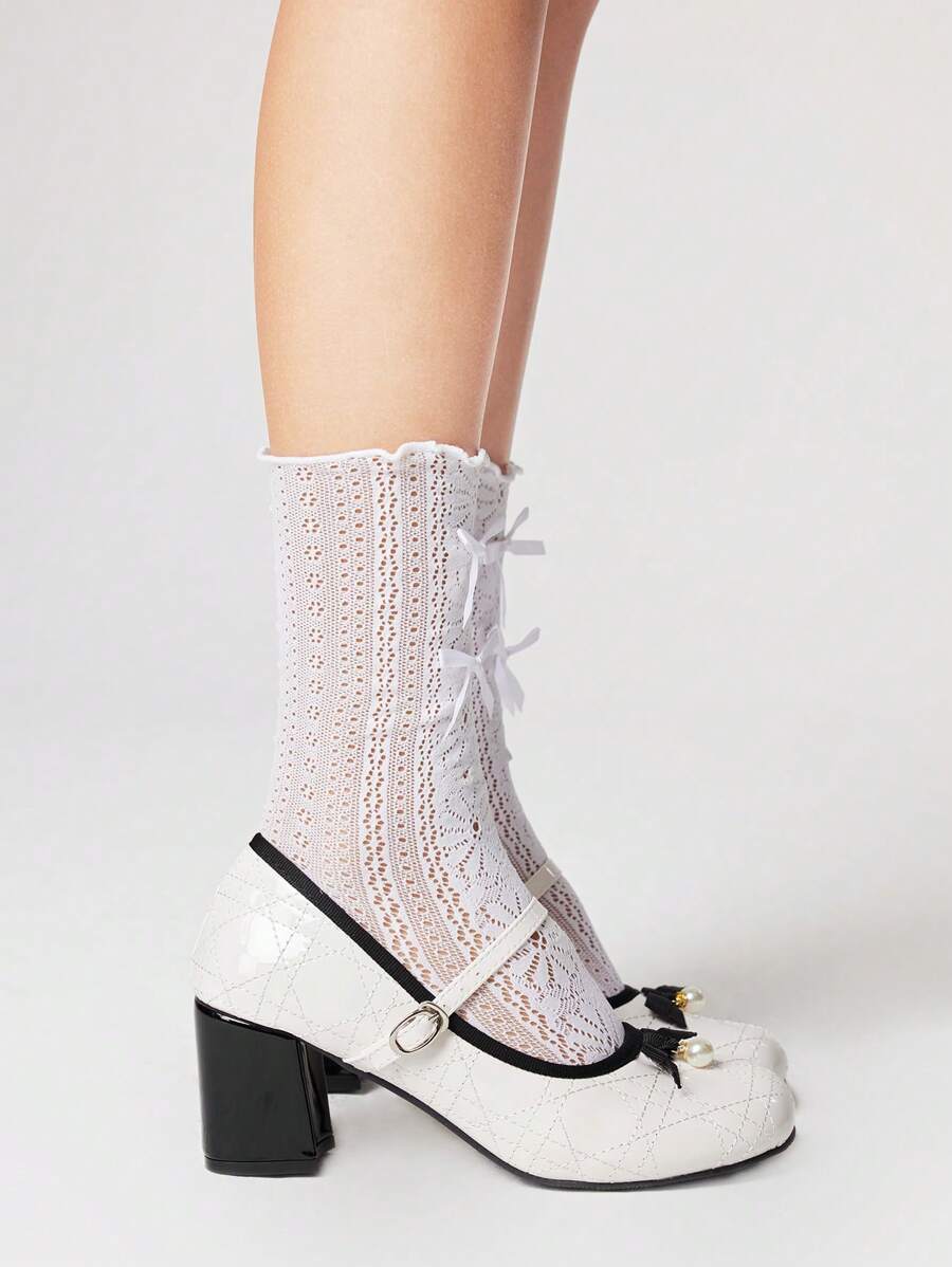 Kawaii Women's White Closed Toe Mary Jane Pumps, Chunky Heel Dressy Work High Heels Shoes