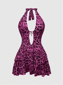 Kawaii Women's Y2K Sexy Shibuya Gyaru Style Cross Pendant Halter Leopard Print Mini Dress