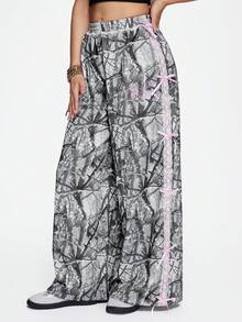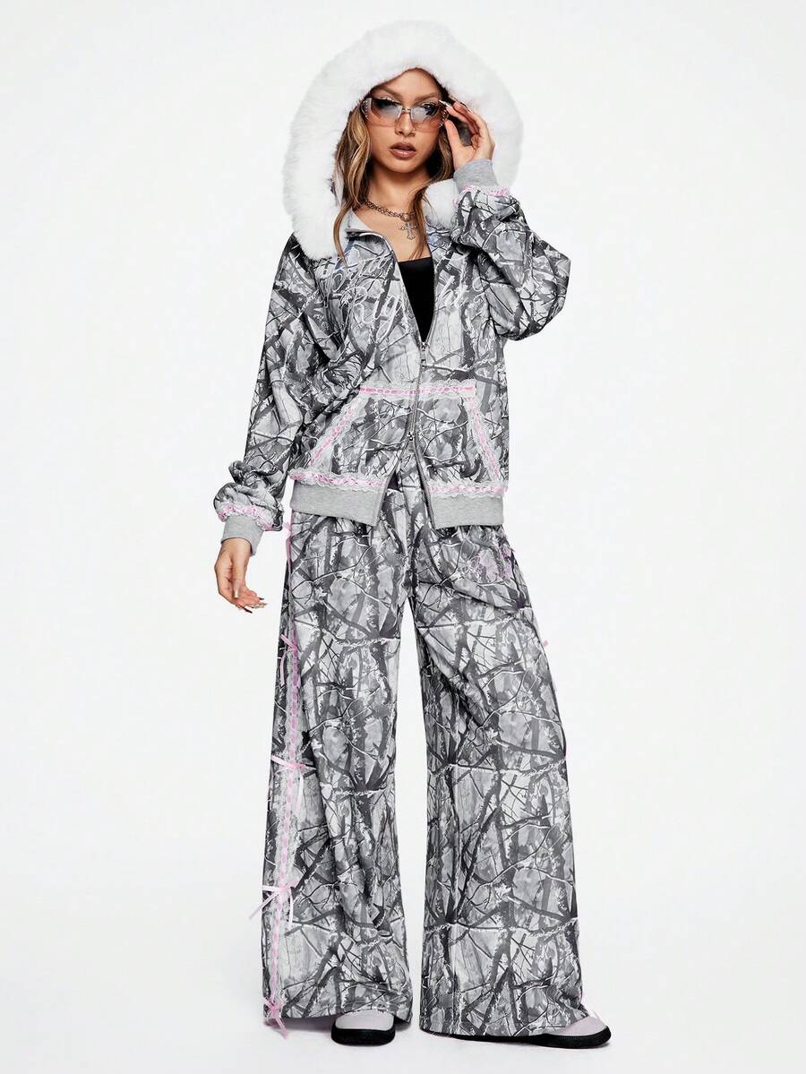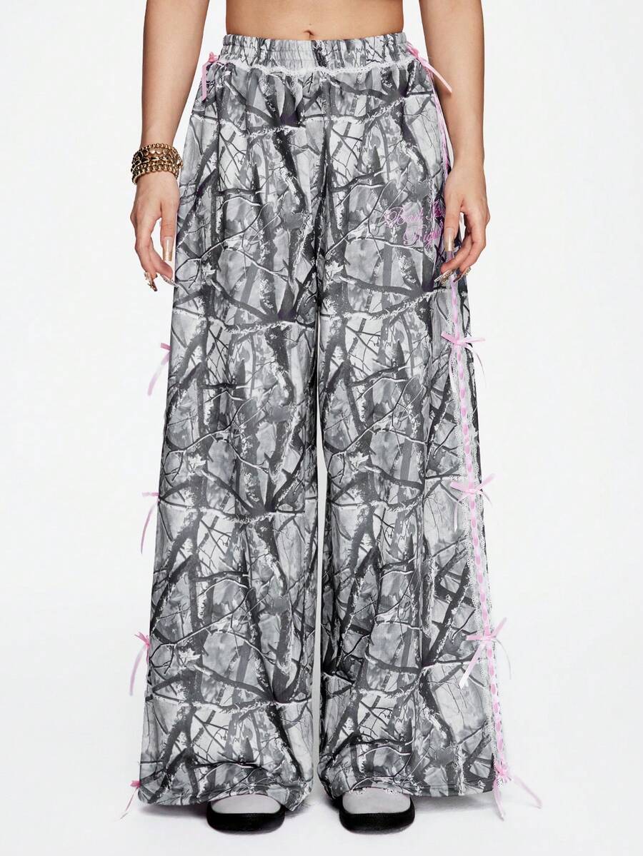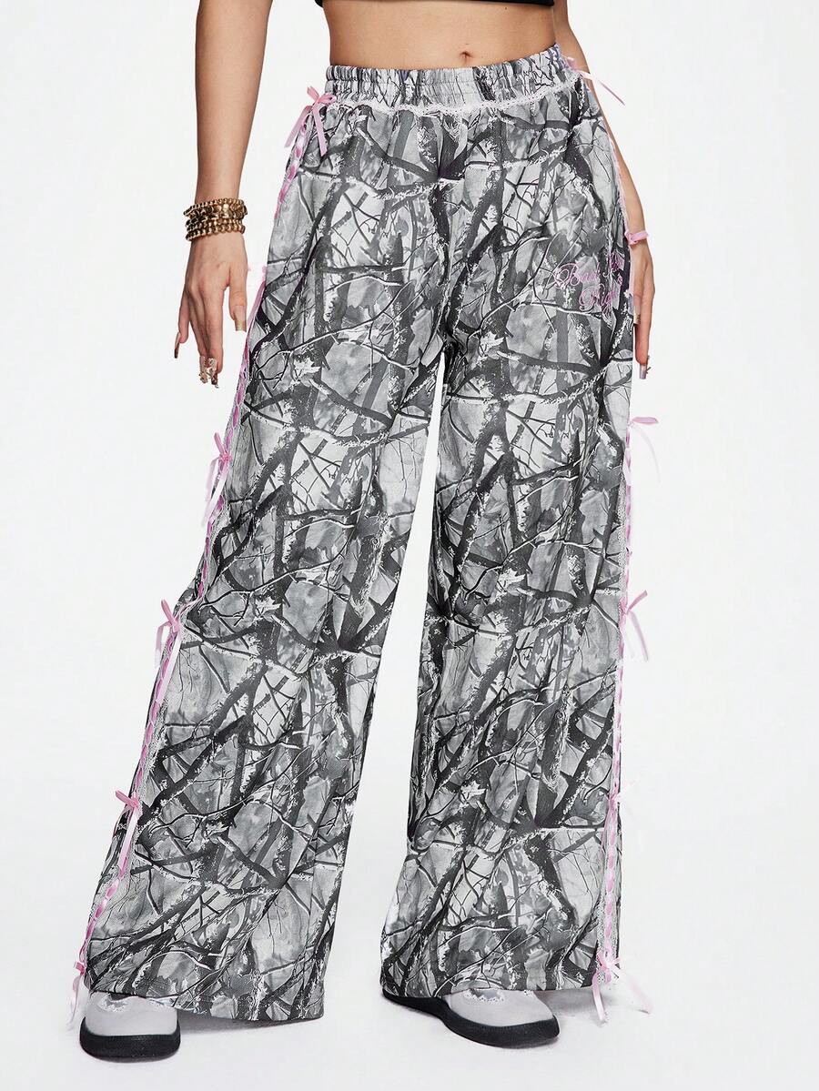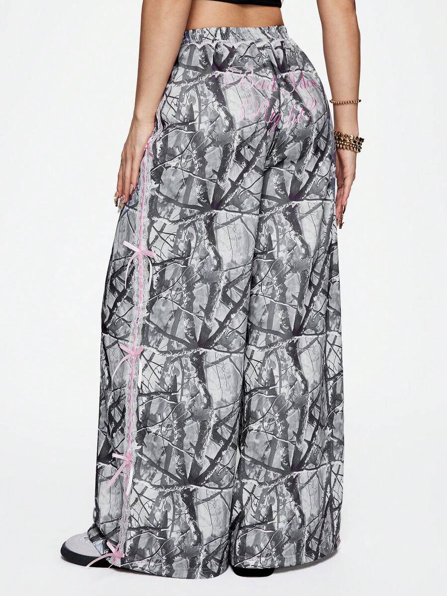 Kawaii Y2K Streetwear Spicy Camouflage Lace Embroidery Loose Fit Women Sweatpants