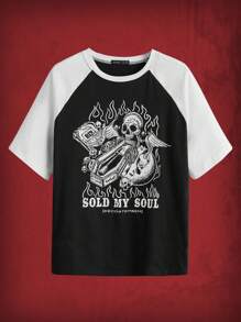 Kecoatembem Skull & Fire Graphic Colorblock Tee