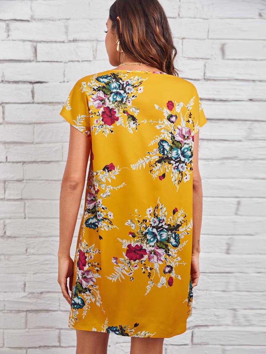 Keyhole Neck Floral Dress