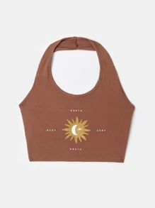 Kinseyhotchkiss Sun & Moon Graphic Crop Halter Top