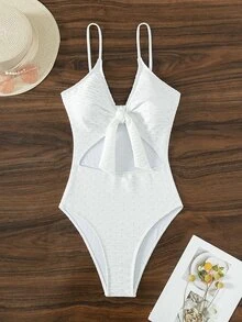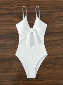 Knot Front Cut Out One Piece Swimsuit
