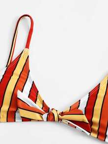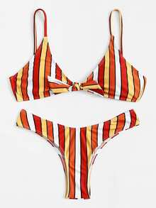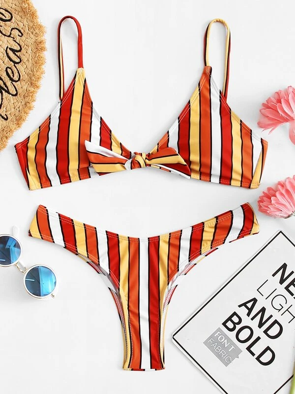 Knot Front Striped Bikini Set