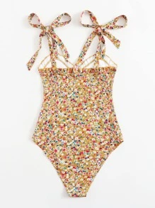Knot Strap Frill Trim Ditsy Floral Bodysuit