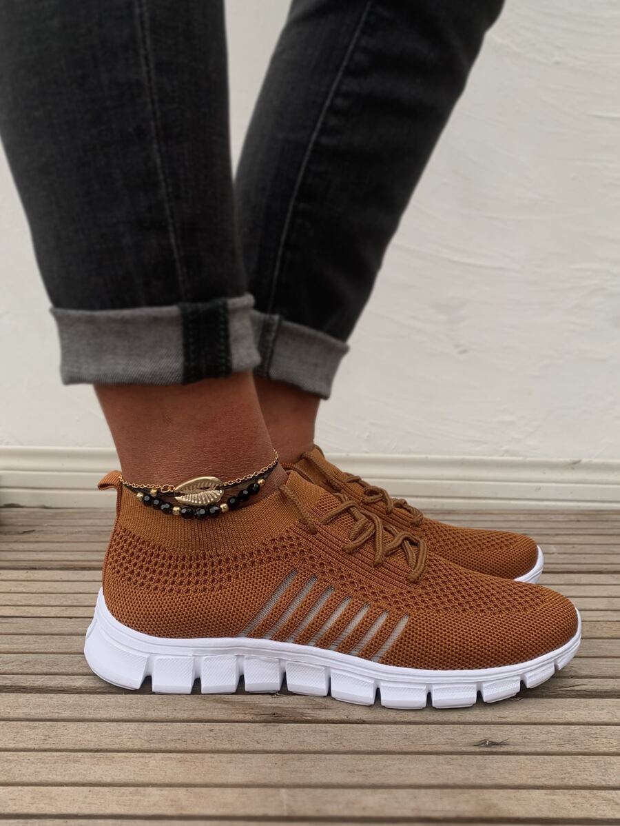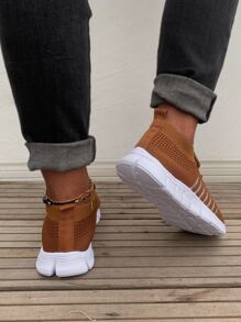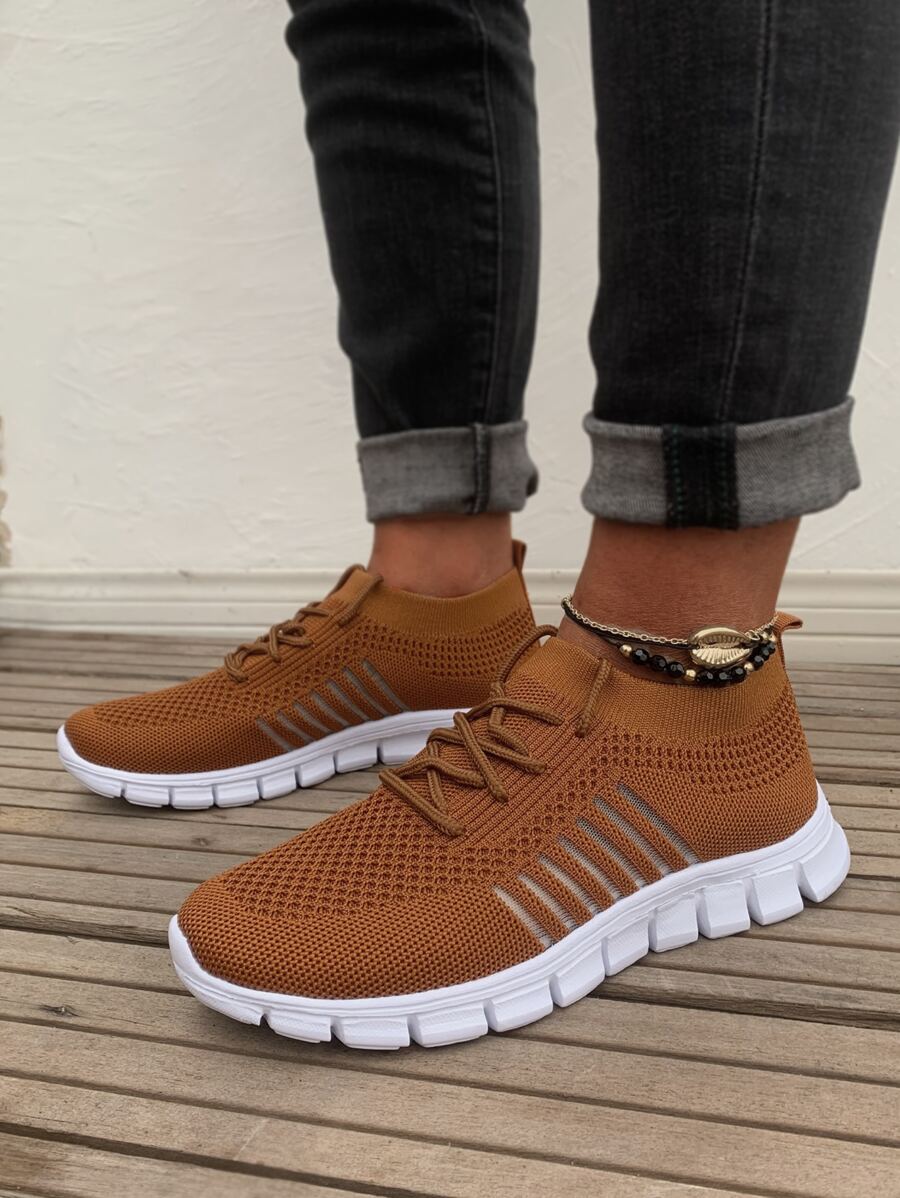 Lace Up Decor Mesh Panel Knit Sneakers