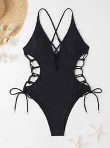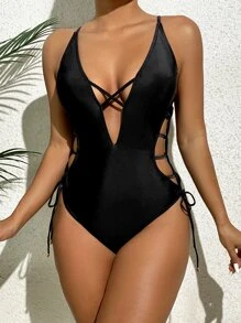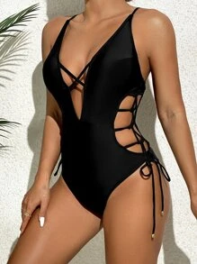Lace Up Side One Piece Swimsuit, For Summer Beach Vacation