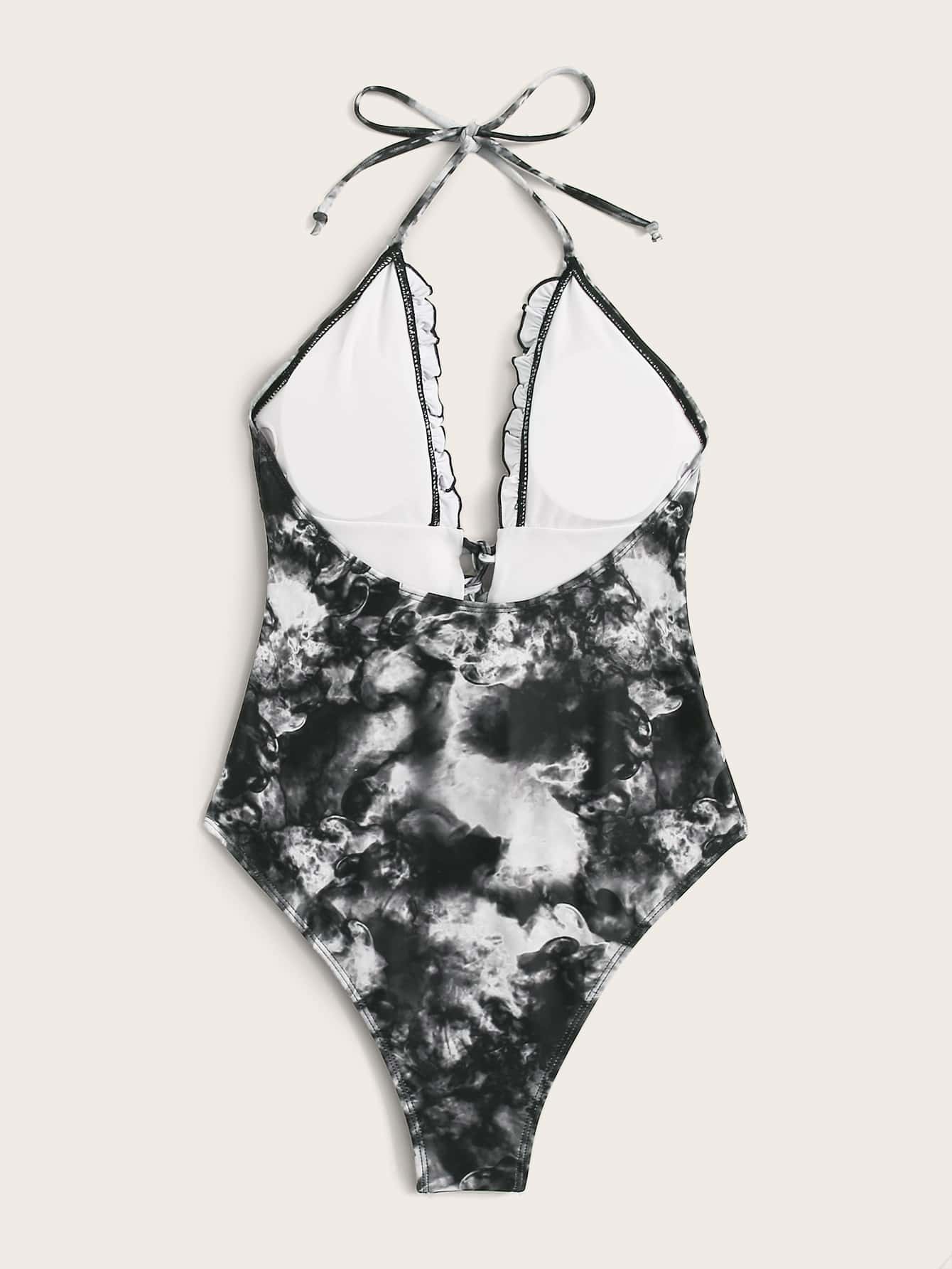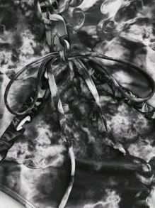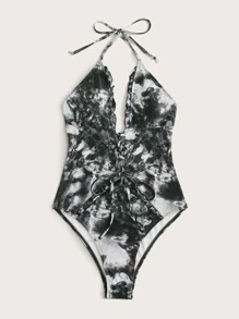 Lace Up Tie Dye Halter One Piece Swimsuit