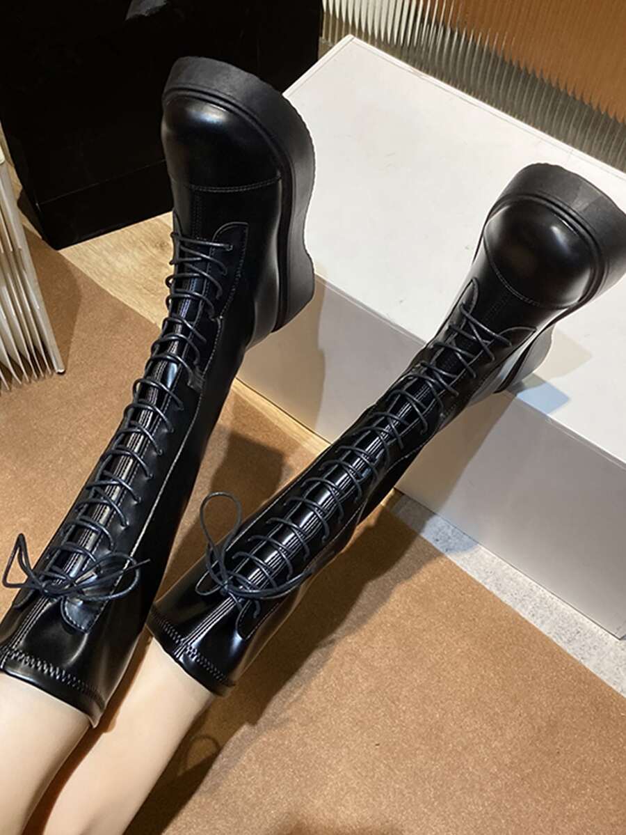 Lace-up Front Platform Chunky Heeled Combat Boots