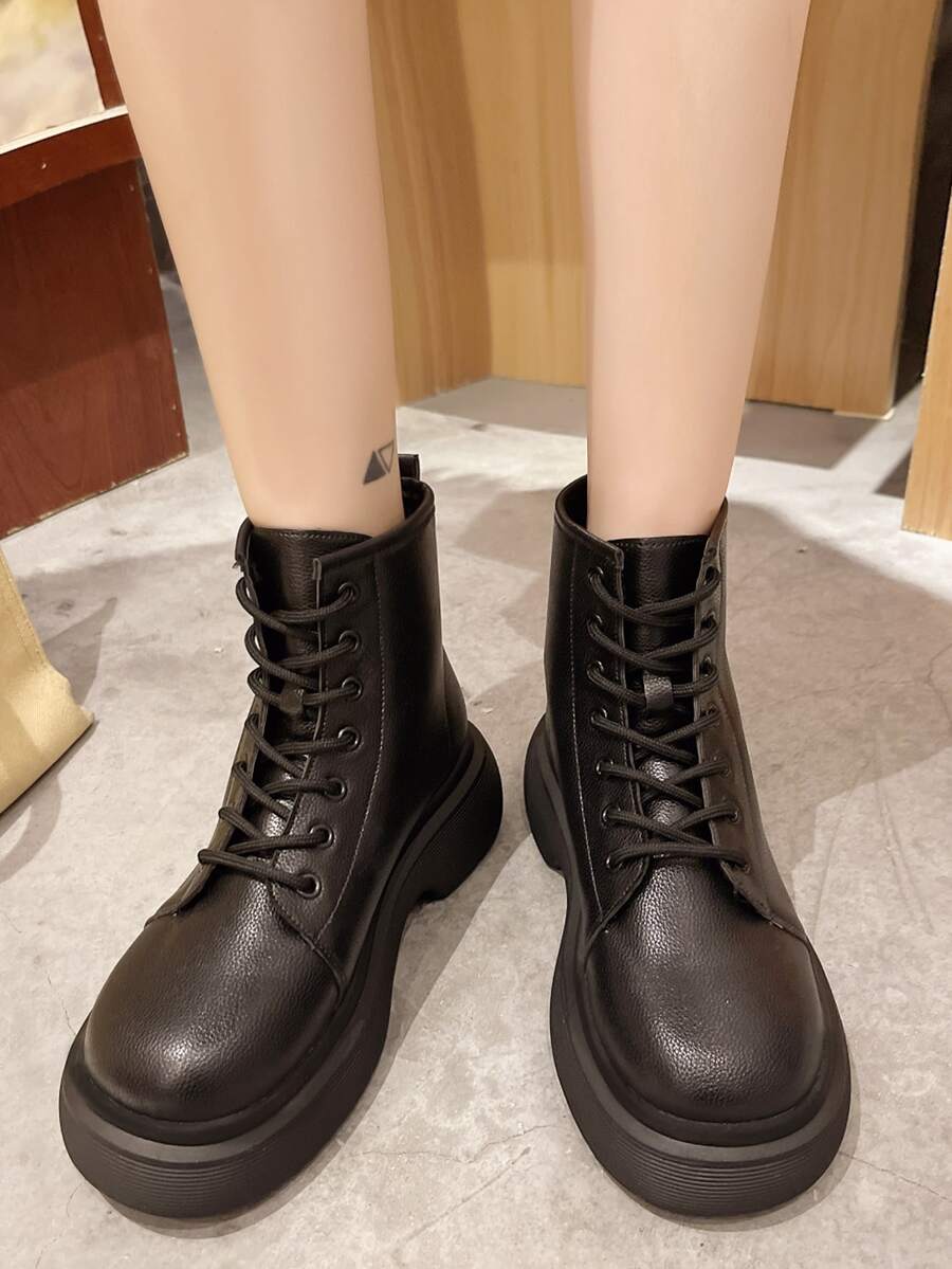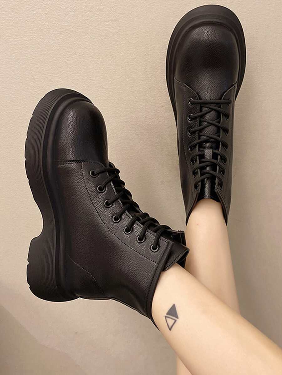 Lace-up Front Round Toe Combat Boots