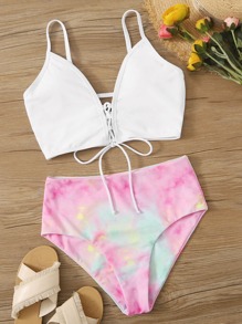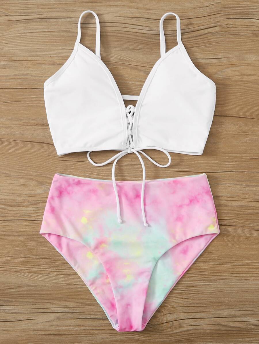 Tie Dye Lace-Up High Waisted Bikini Set Summer Beach