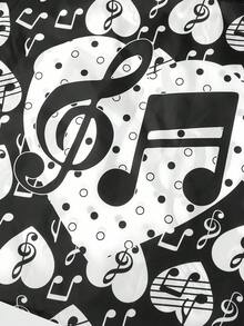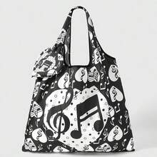 Kawaii Large Capacity Foldable Tote Bag With Heart & Music Note Pattern, Portable Shopping Bag With Coin Purse