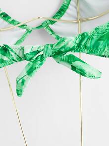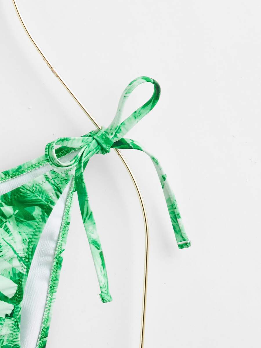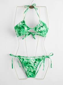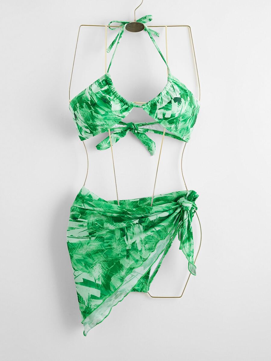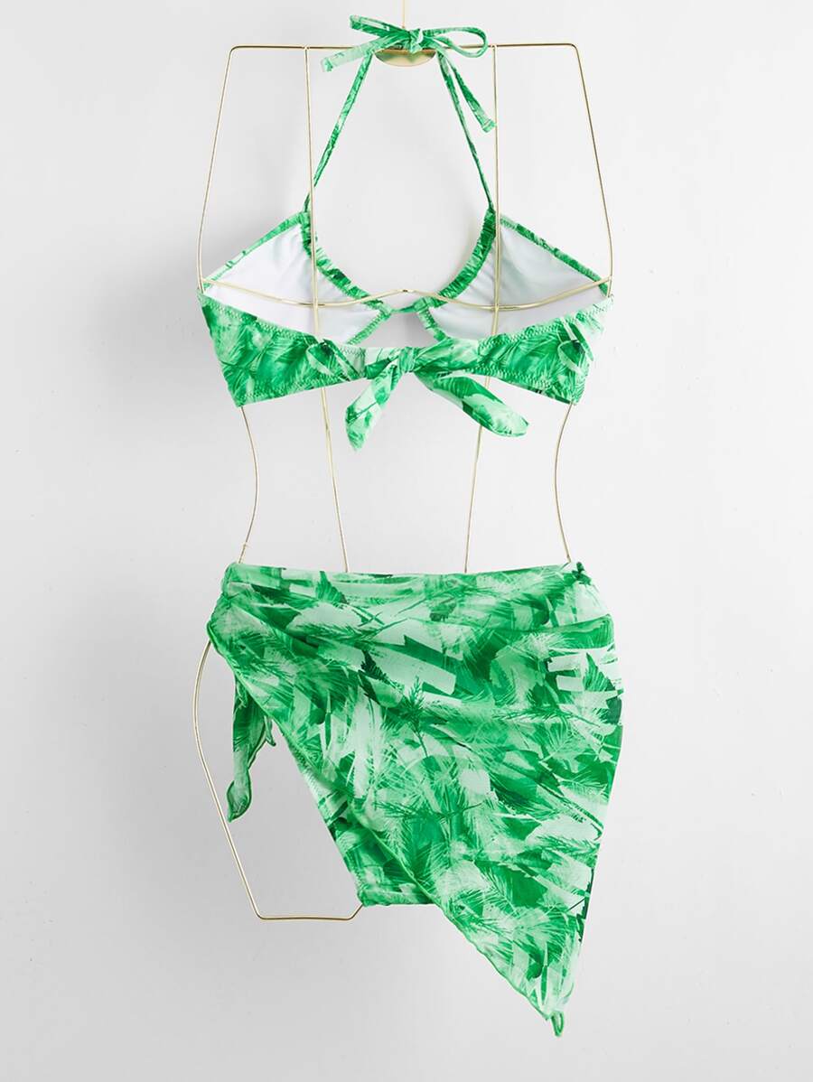Leaf Print Tie Side Bikini Set & Beach Skirt